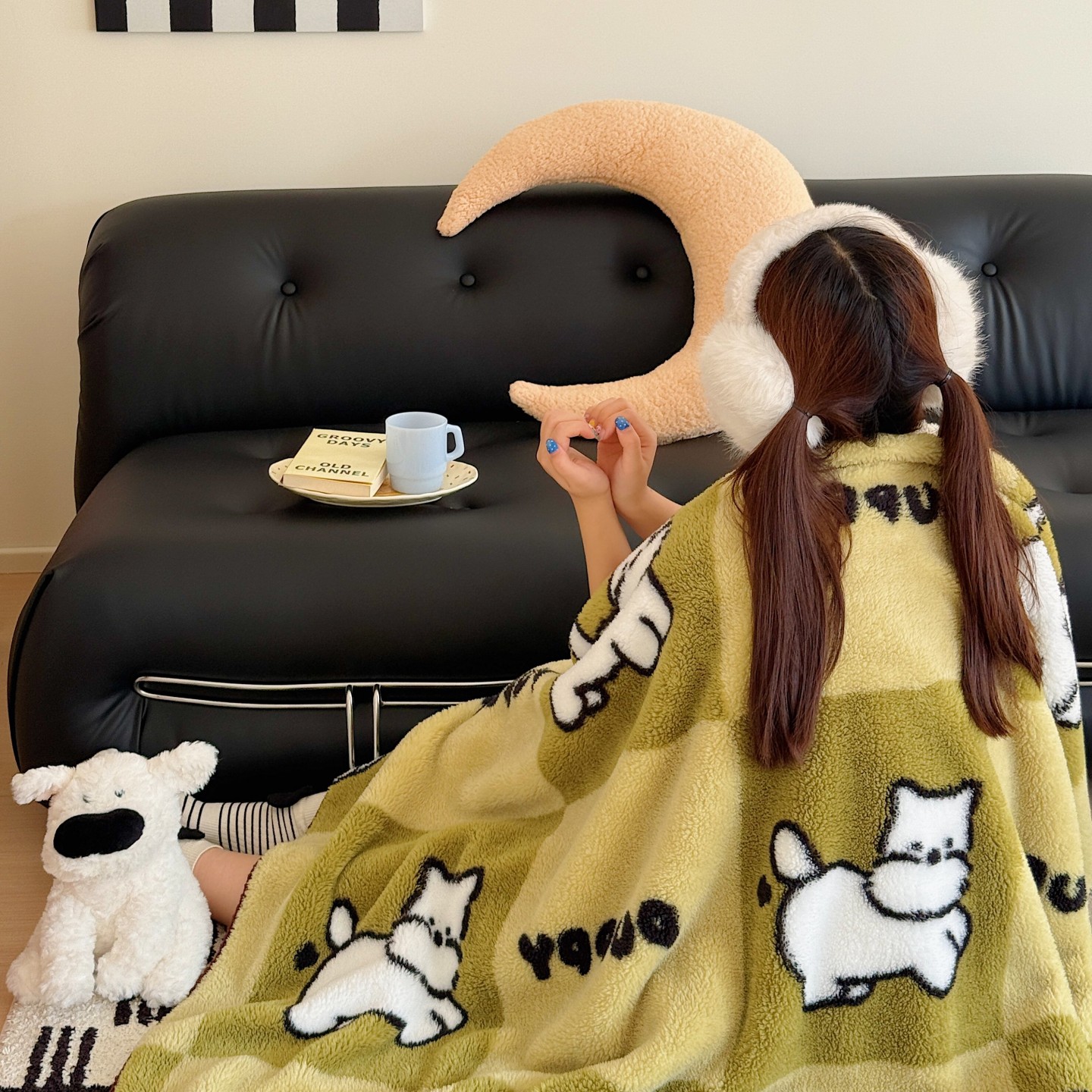 (总)顾里家纺 2024新款ins奶萌格子狗狗毛巾绣牛奶绒四件套,粉格小狗,黄格小狗,咖格小狗,蓝格小狗,绿格小狗
