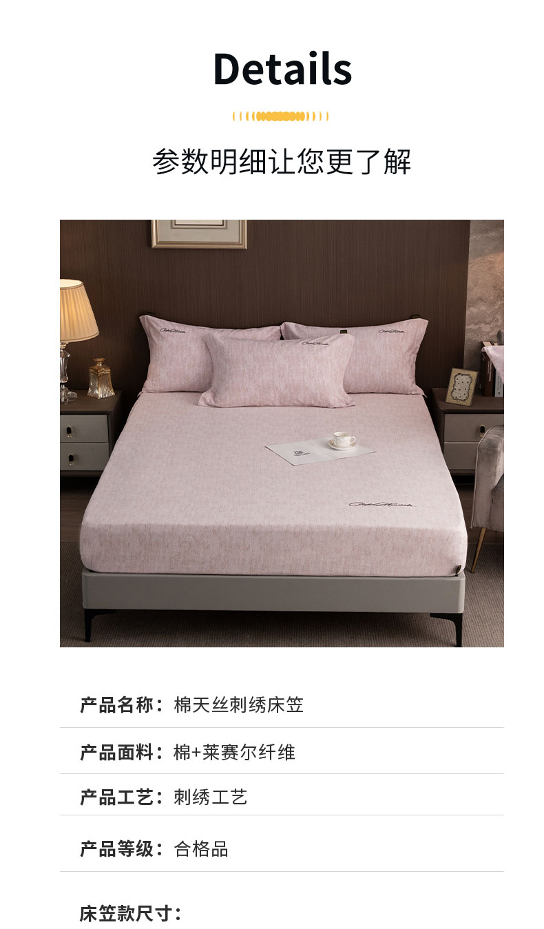 商品名称:春皖家纺 2025新款棉天丝纯色刺绣四件套单品系列-单床笠 樱绮丝