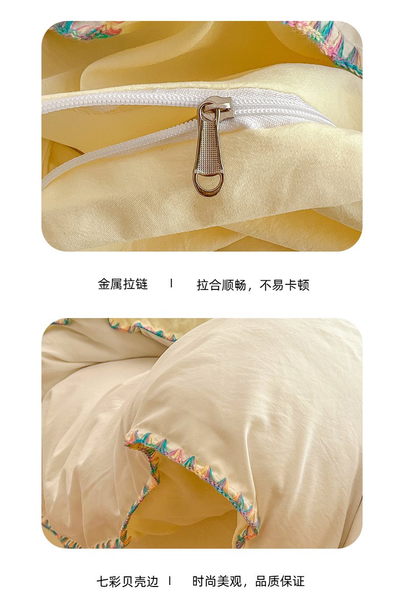 当前位置: 91家纺网 > 商品网购 > 床品套件 > 四件套 > 水洗棉四件套 > 冕悠家纺 2025新款A类七彩贝壳边水洗棉四件套-加微信提供买家秀2 七彩-芝士奶白