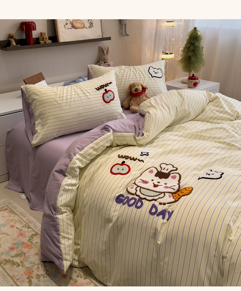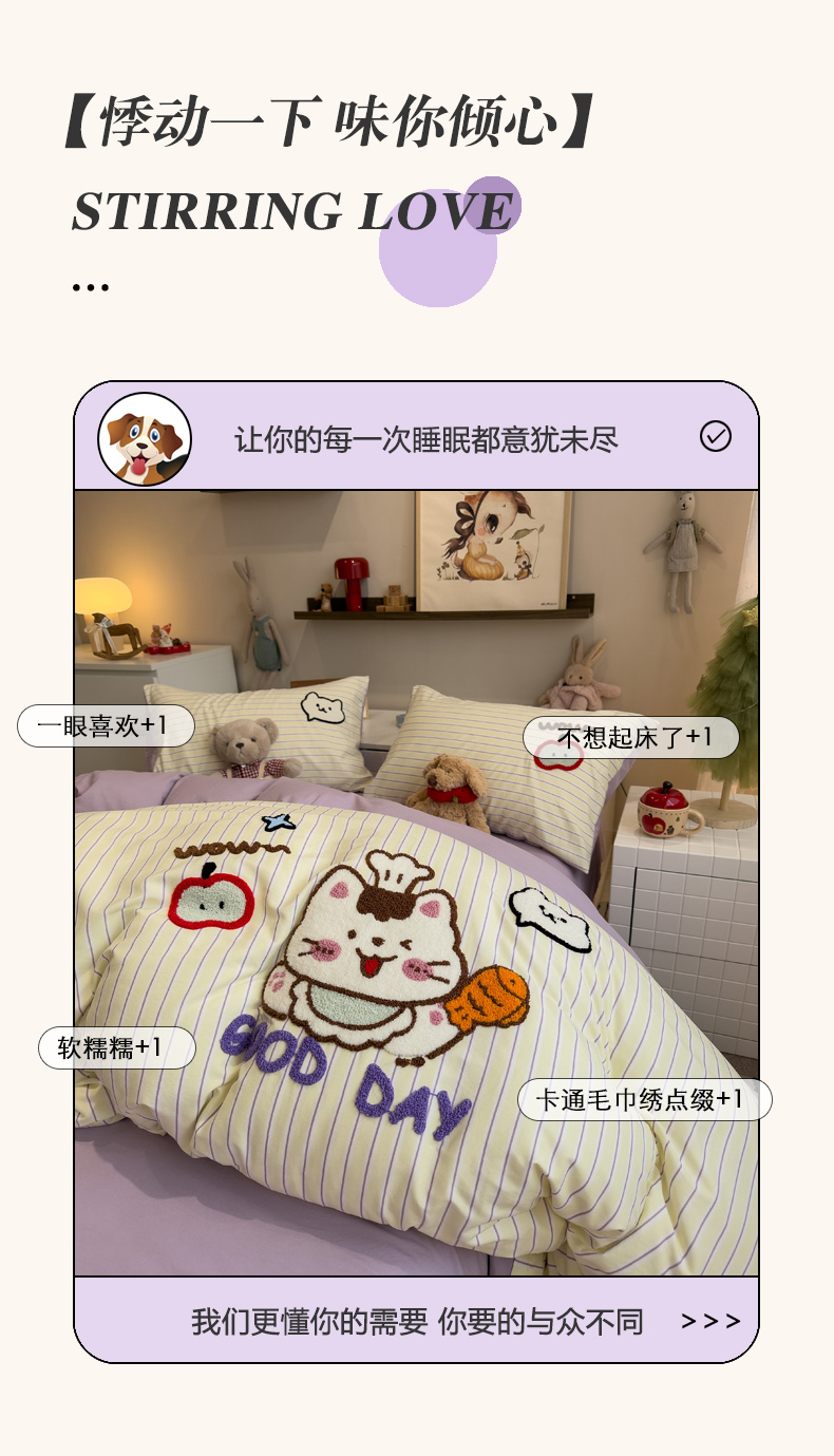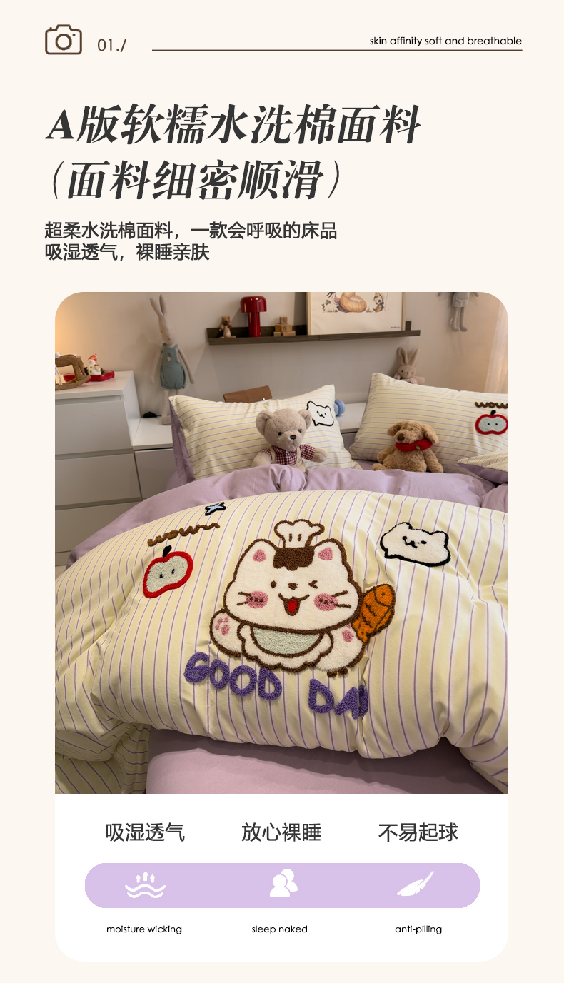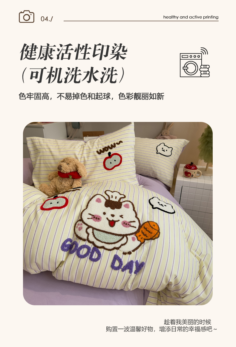 当前位置: 91家纺网 > 商品网购 > 床品套件 > 四件套 > 毛巾绣四件套 > 曼谷家纺 2026新款卡通水洗棉毛巾绣四件套被套 小鱼喵喵酱-紫条