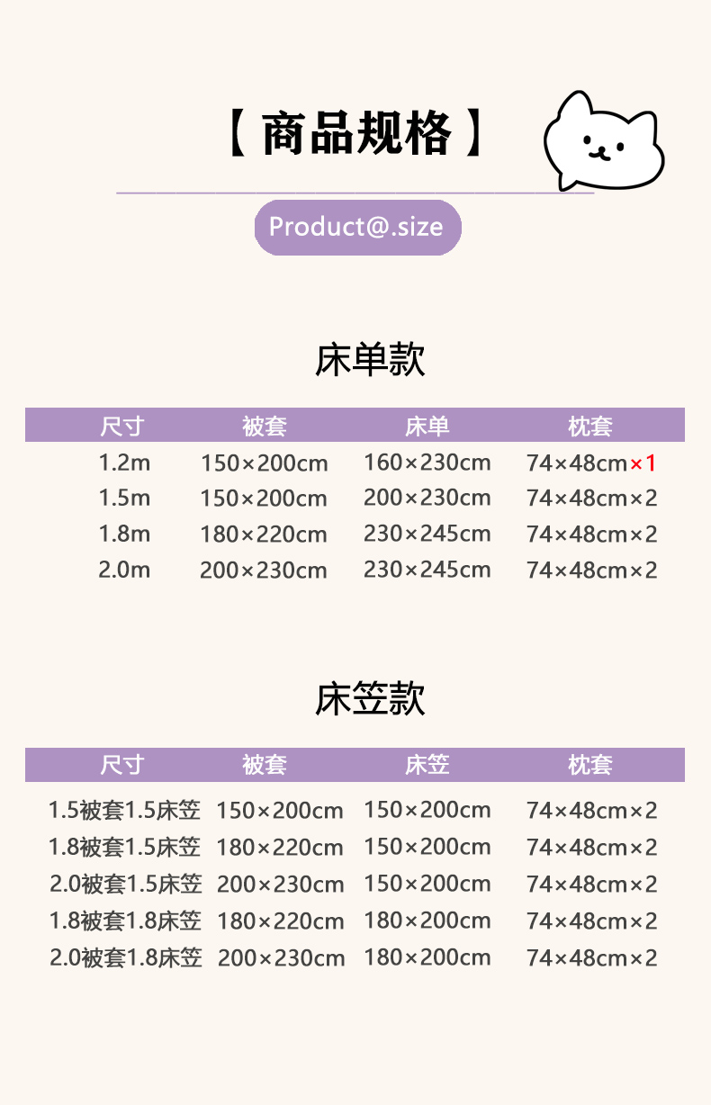 1.8m床笠四件套被套150*200 | ¥63.00 |