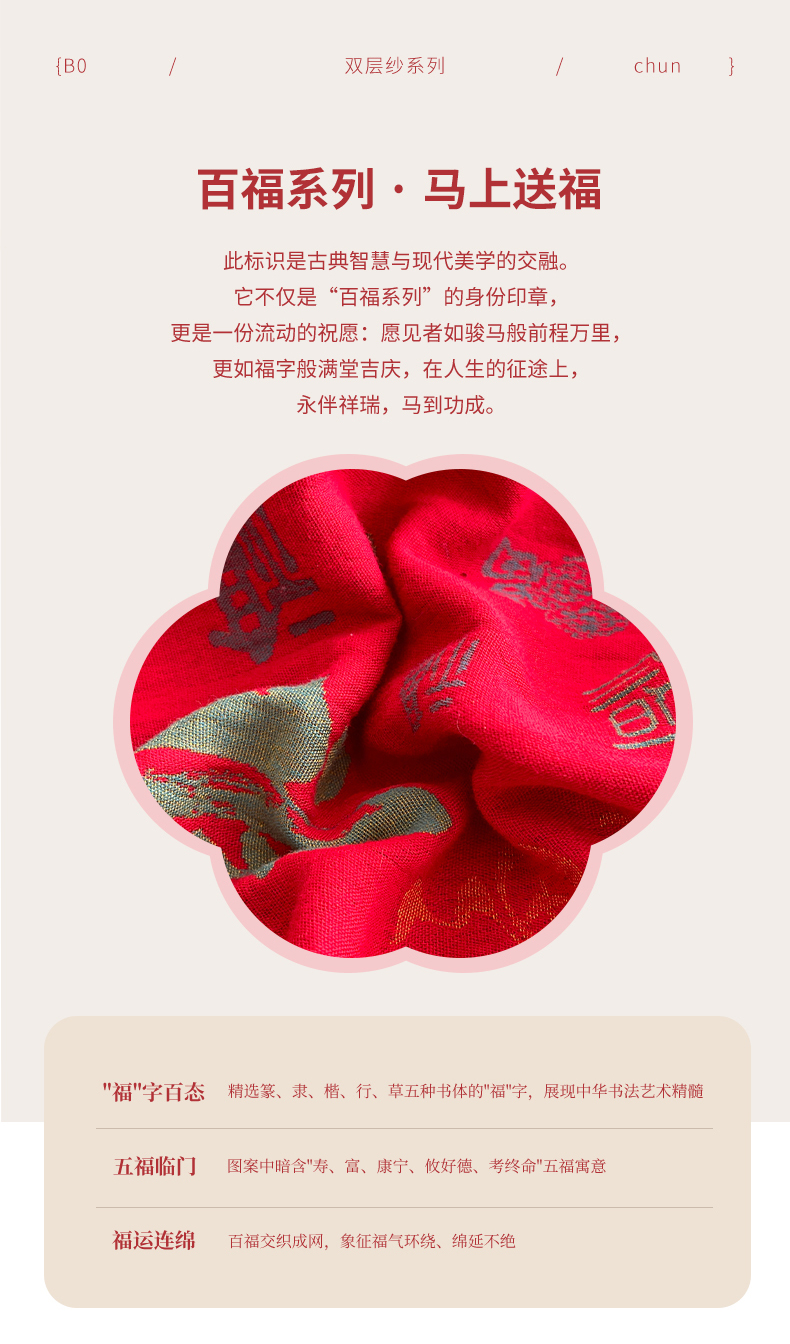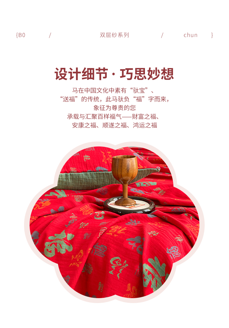 商品名称:春皖家纺 2026新款全棉色织双层纱提花百福系列拉链款-单床单 红百福