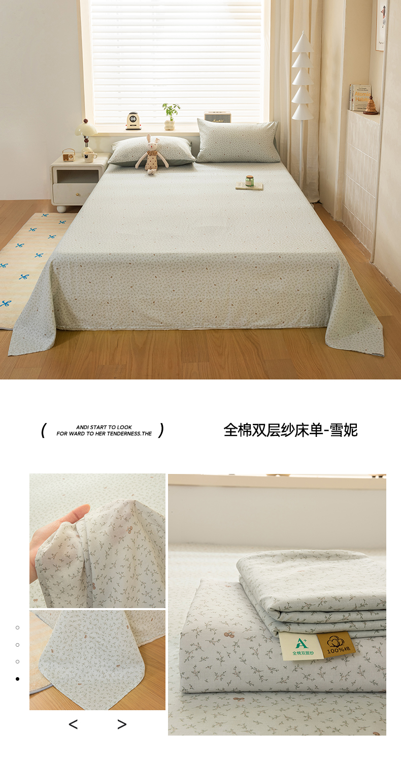 当前位置: 91家纺网 > 商品网购 > 床上用品 > 床单 > 雯雨家纺 2026新款全棉有氧双层纱床单 全棉双层纱床单-雪妮