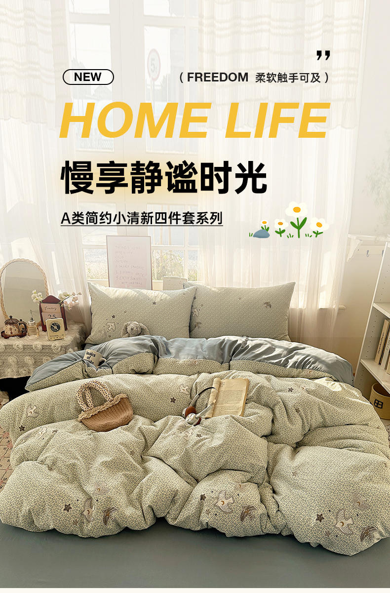当前位置: 91家纺网 > 商品网购 > 床品套件 > 四件套 > 水洗棉四件套 > 初夏家纺 2026 古法仿棉水洗四件套A类被罩床单三件套床上用品卡通可爱【提供买家秀】 和平鸽
