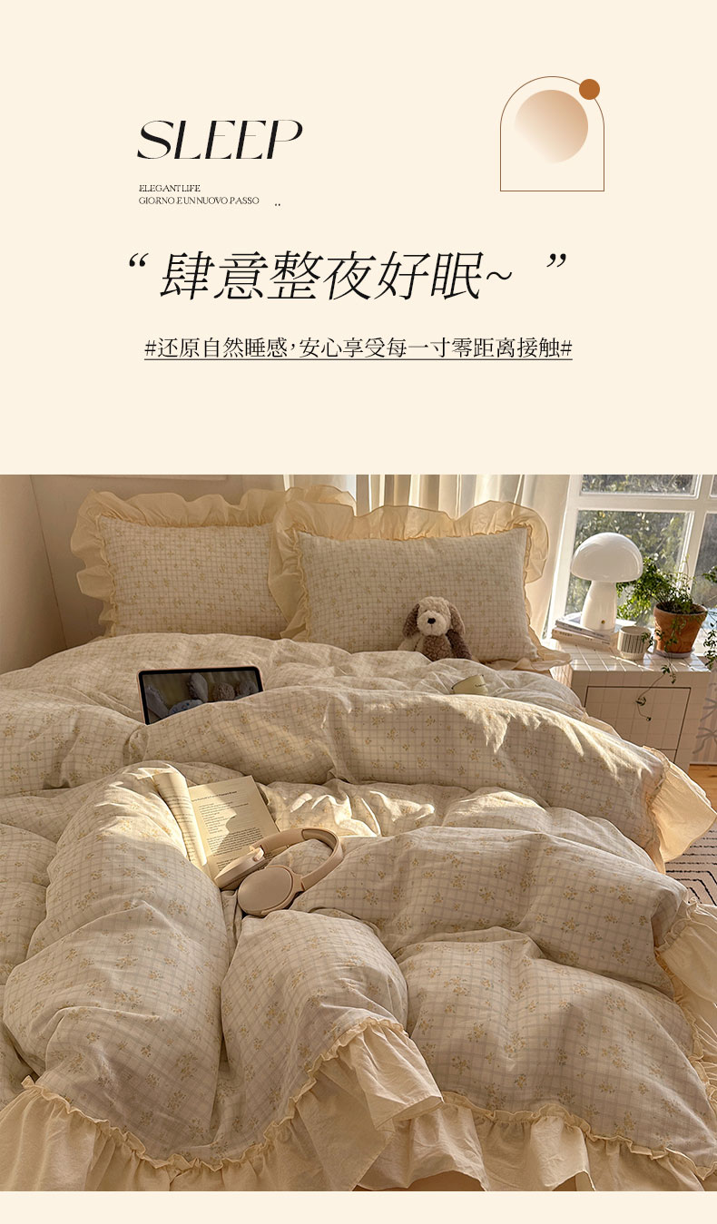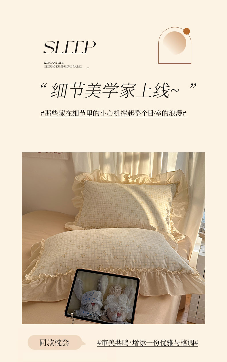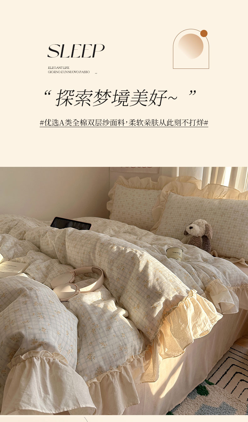 当前位置: 91家纺网 > 商品网购 > 床品套件 > 四件套 > 全棉普通四件套 > 六巷胡同 2026新款韩系博主风花边款小碎花全棉双层纱四件套 双层纱-山岛野桂