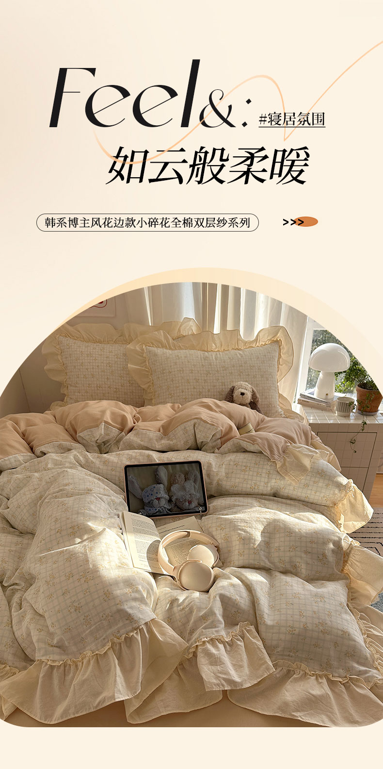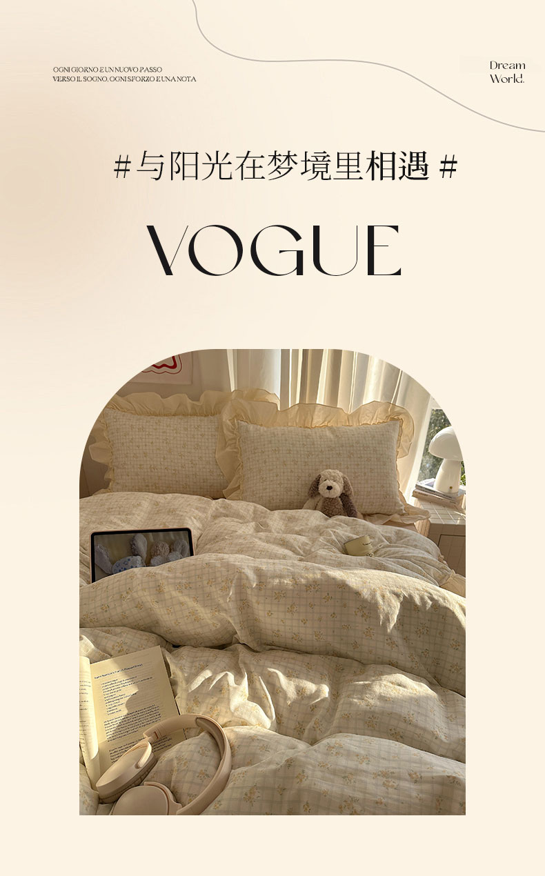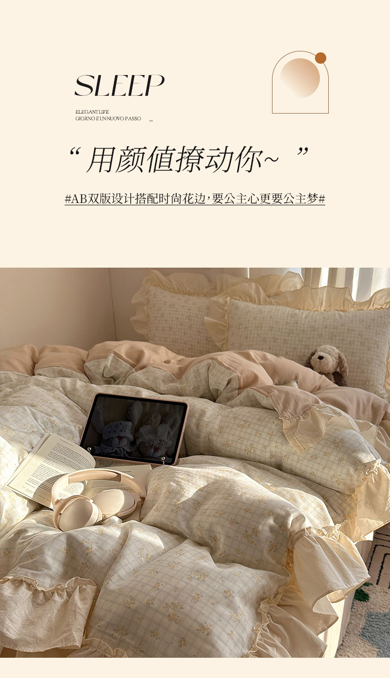 当前位置: 91家纺网 > 商品网购 > 床品套件 > 四件套 > 全棉普通四件套 > 六巷胡同 2026新款韩系博主风花边款小碎花全棉双层纱四件套 双层纱-山岛野桂