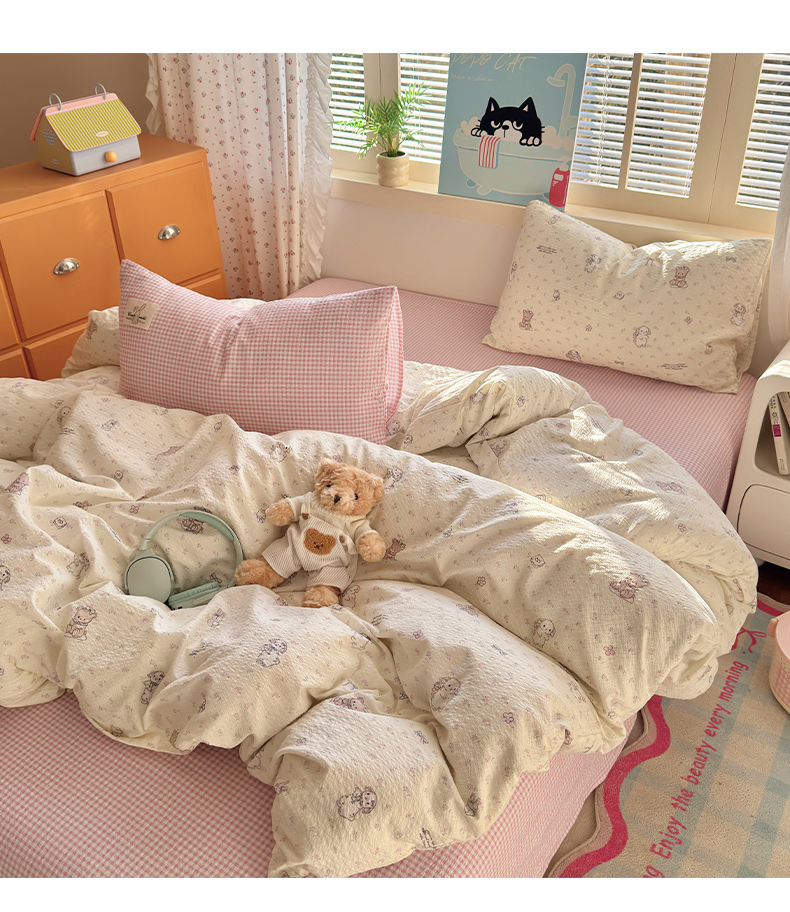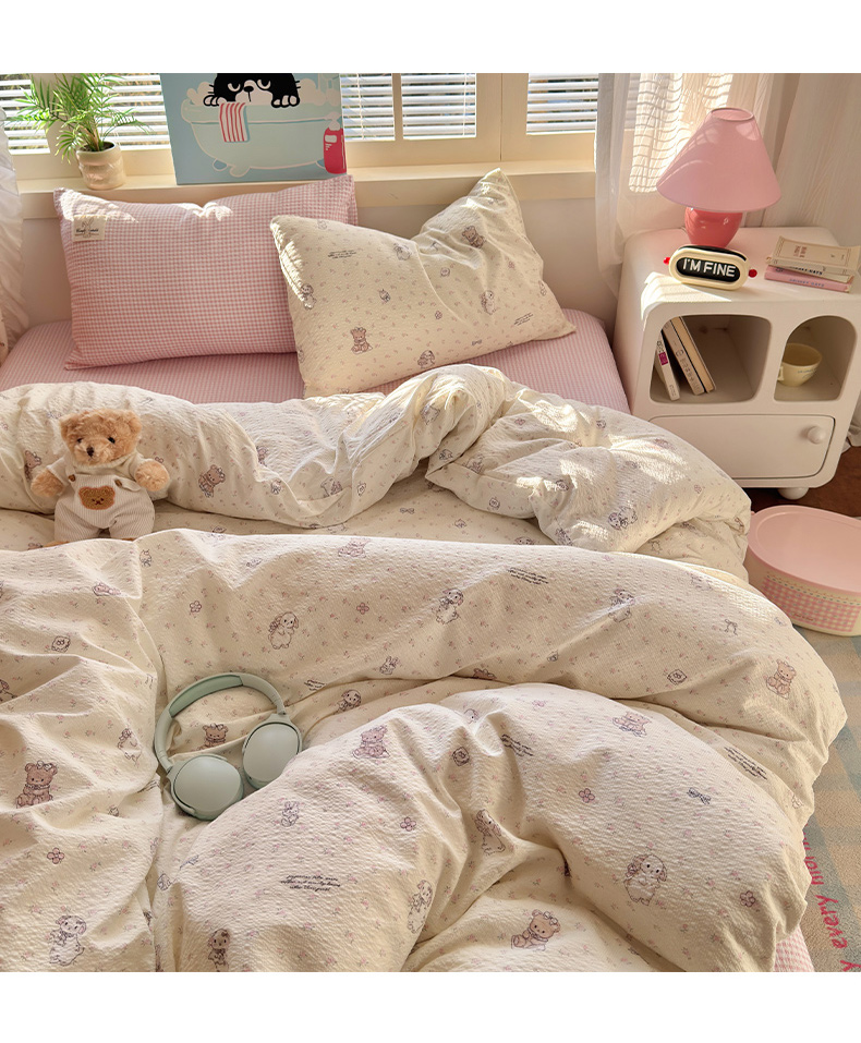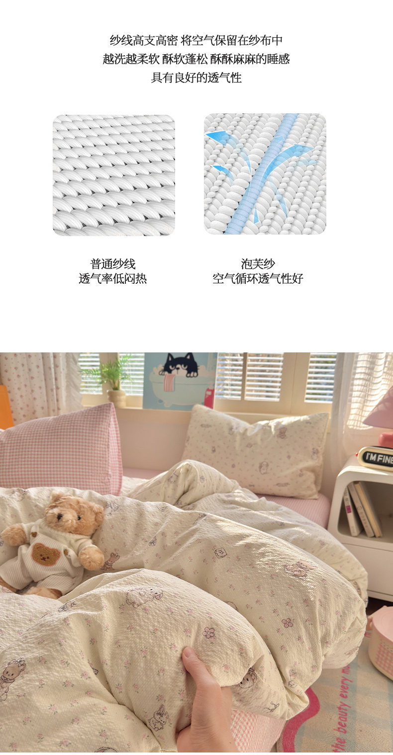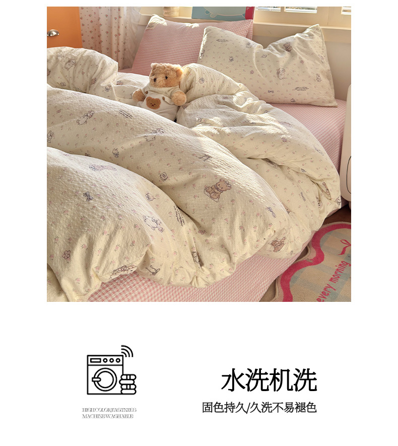 当前位置: 91家纺网 > 商品网购 > 床品套件 > 四件套 > 其它四件套 > 奈颜 2026新款贴标款A类超柔泡芙纱印花四件套 田园兔