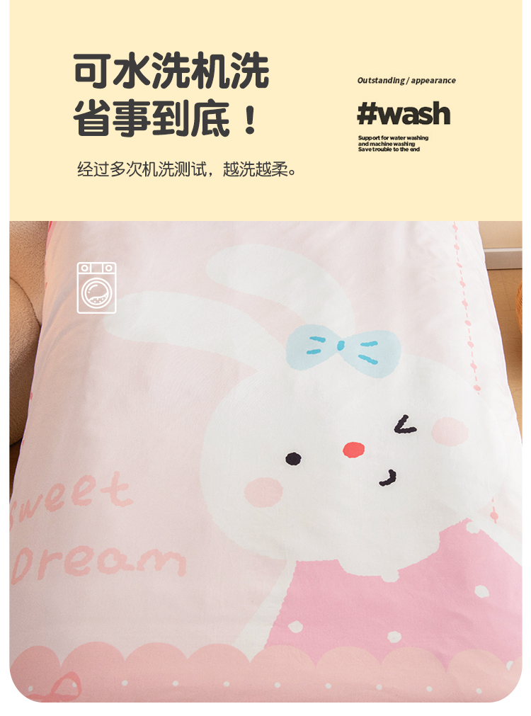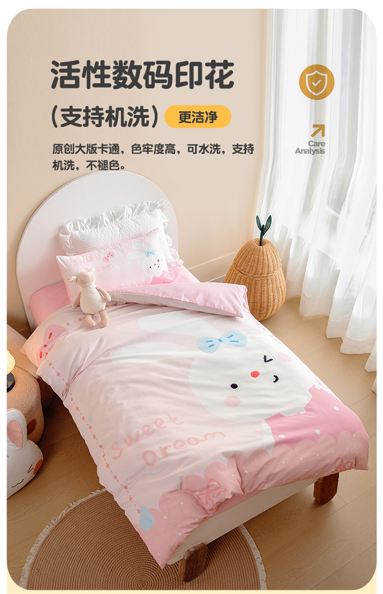 绒梦里 2026新款A类全棉卡通大版数码印花幼儿园被子三件套儿童套件被套,足球宝贝,波点企鹅,嘟嘟小车,粉萌小兔,快乐芝士,奶茶兔兔,平安小马,俏皮恐龙,幸运树,幸运小熊,紫色小兔,熊猫宝贝