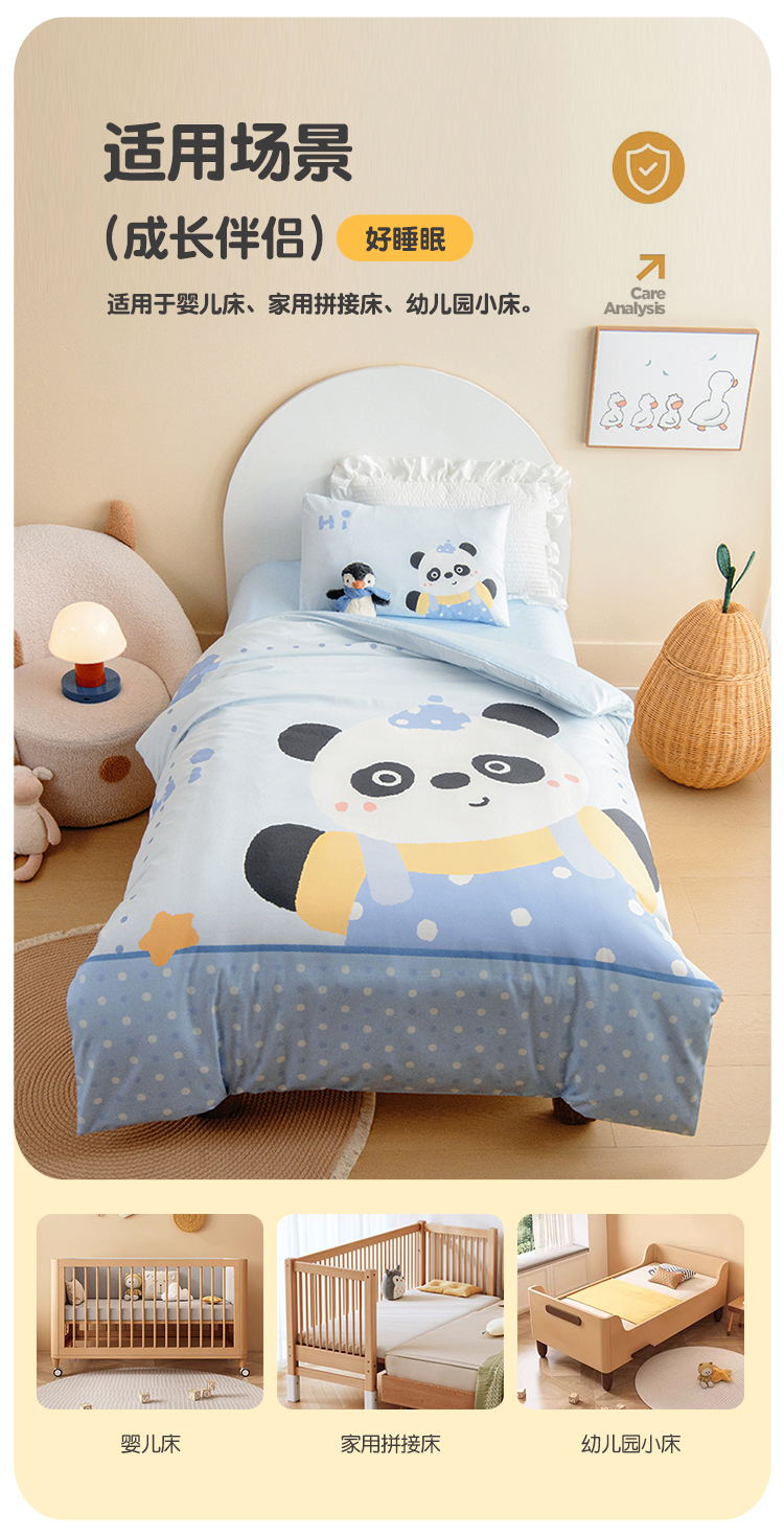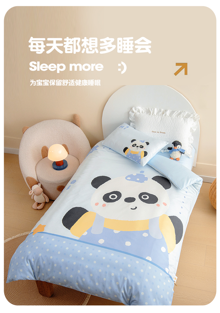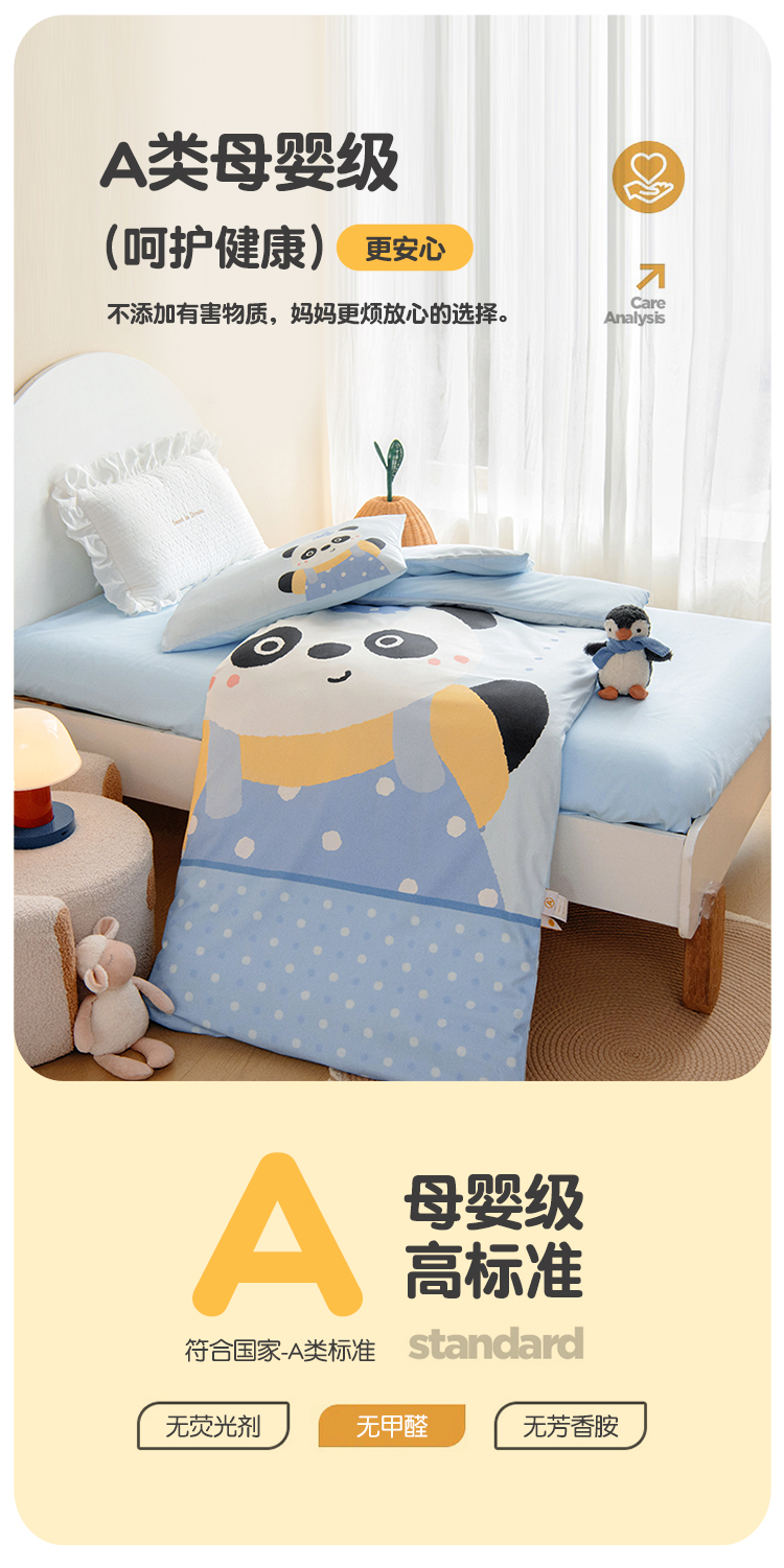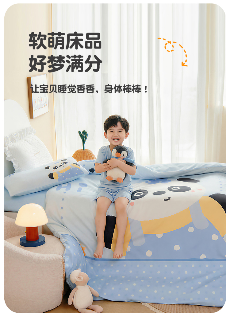 绒梦里 2026新款A类全棉卡通大版数码印花幼儿园被子三件套儿童套件被套,足球宝贝,波点企鹅,嘟嘟小车,粉萌小兔,快乐芝士,奶茶兔兔,平安小马,俏皮恐龙,幸运树,幸运小熊,紫色小兔,熊猫宝贝