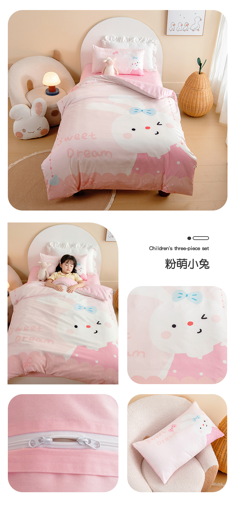 绒梦里 2026新款A类全棉卡通大版数码印花幼儿园被子三件套儿童套件被套,奶茶兔兔,波点企鹅,嘟嘟小车,粉萌小兔,平安小马,俏皮恐龙,幸运树,幸运小熊,紫色小兔,熊猫宝贝,足球宝贝,快乐芝士