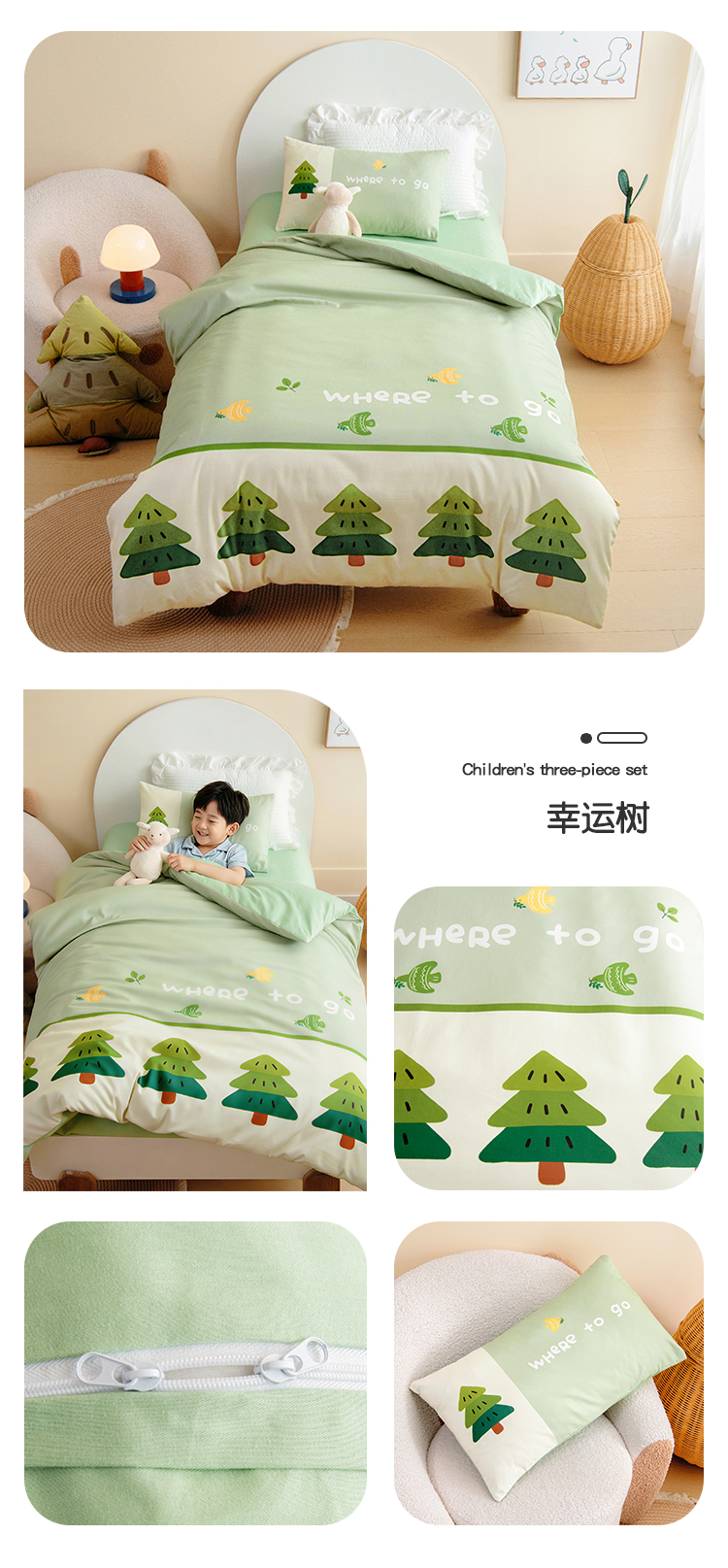 绒梦里 2026新款A类全棉卡通大版数码印花幼儿园被子三件套儿童套件被套,幸运树,波点企鹅,嘟嘟小车,粉萌小兔,快乐芝士,奶茶兔兔,平安小马,俏皮恐龙,幸运小熊,熊猫宝贝,紫色小兔,足球宝贝