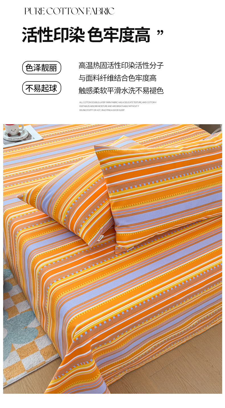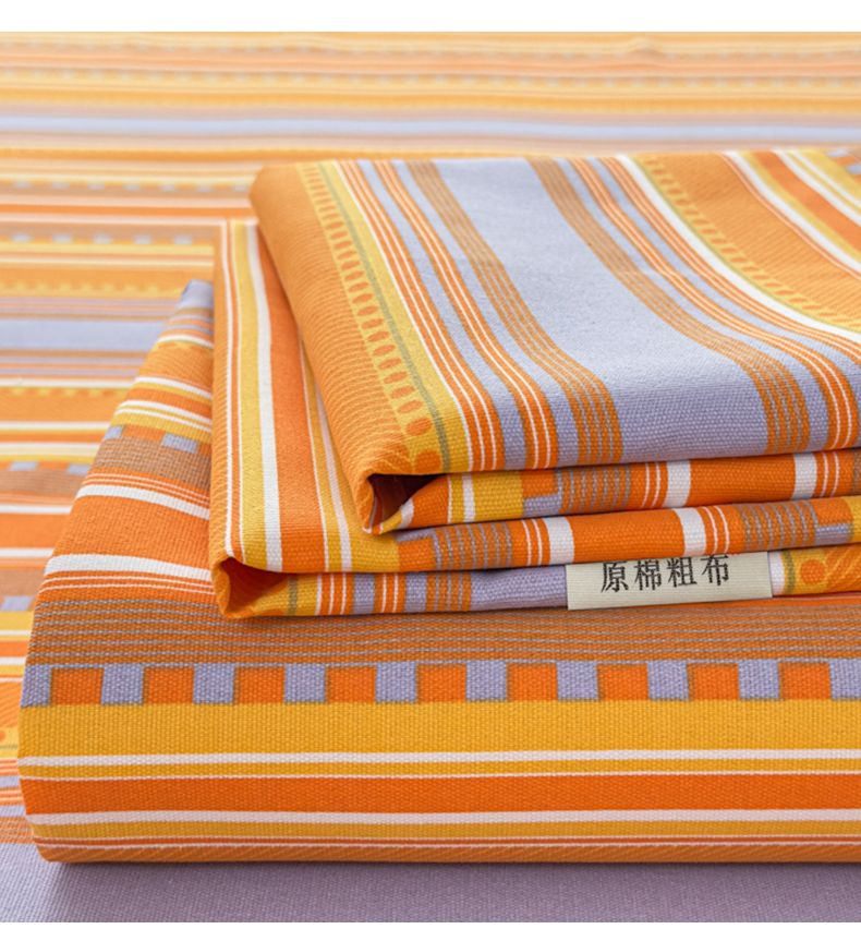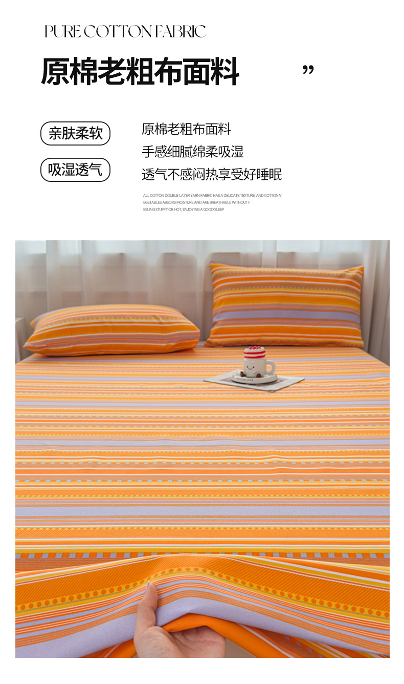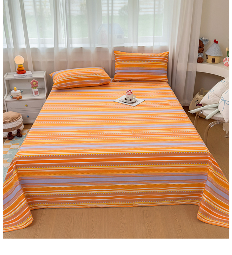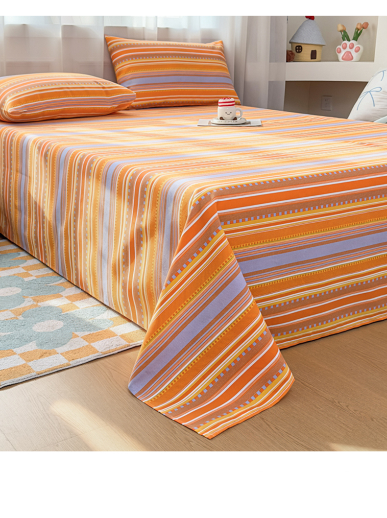 • 91家纺网 家纺一手货源 找家纺 爱彼家纺 2026夏季新款亲肤原棉老粗布透气印花床单单件热门热门床单款新升级-细沙老粗布 橘色条纹