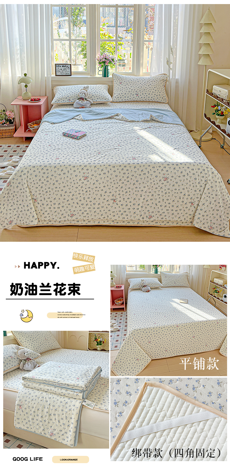 (总)卡普家居 2026新款A类锦氨凉感印花夏被床盖床单款三件套,幻彩星月,萌兔星愿,抹茶序曲,木马童话,奶粉修狗,奶盖Kitty,奶黄泰迪,奶咖萌宠,奶油兰花束,帕恰狗,青提奶冻,软糖小熊,条纹熊,星星人