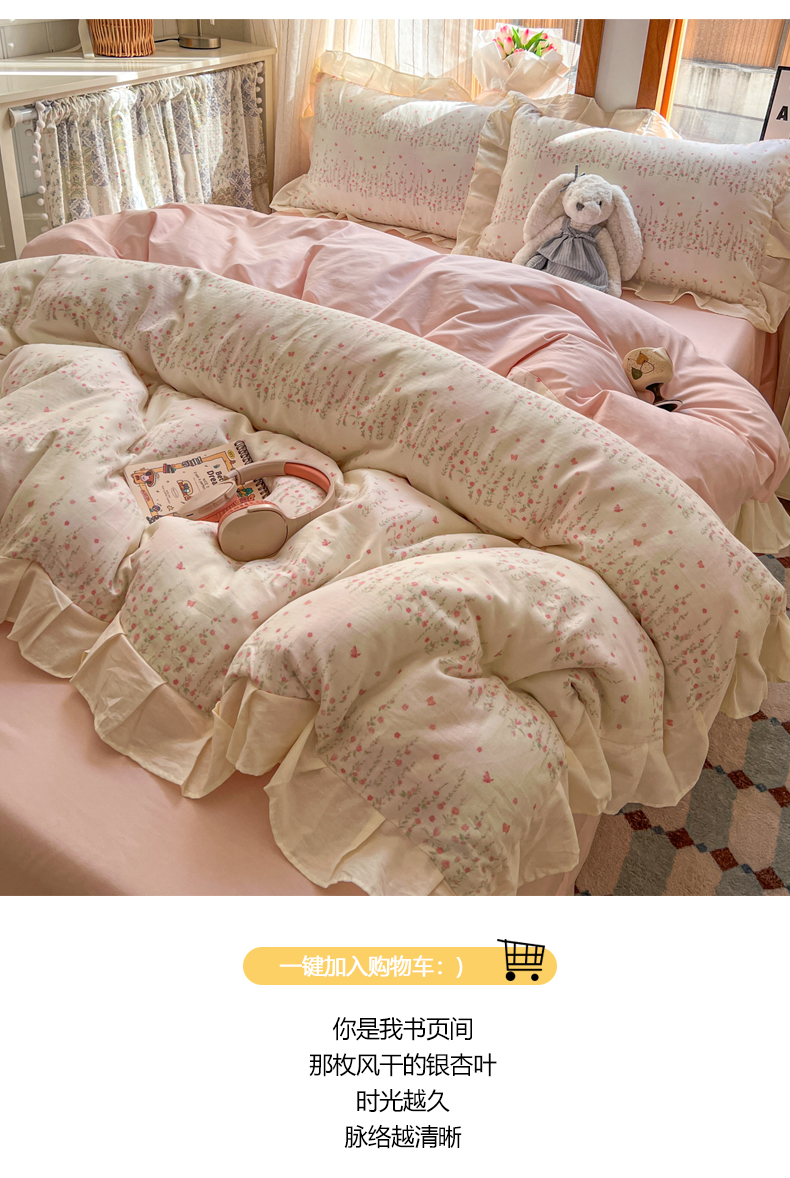 当前位置: 91家纺网 > 商品网购 > 床品套件 > 四件套 > 全棉普通四件套 > 耀悦家纺 2026新款全棉纯棉双层纱花边四件套a类新中式小清新床笠枕套被套 浅夏紫鸢