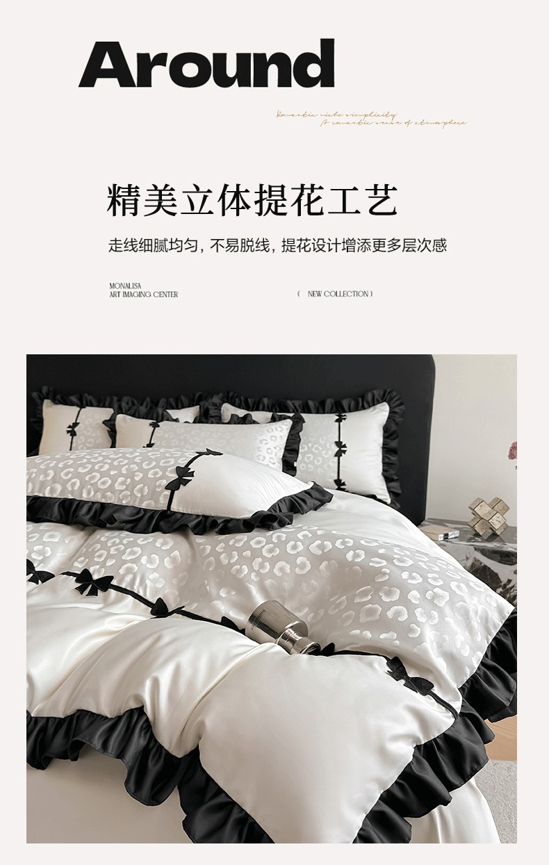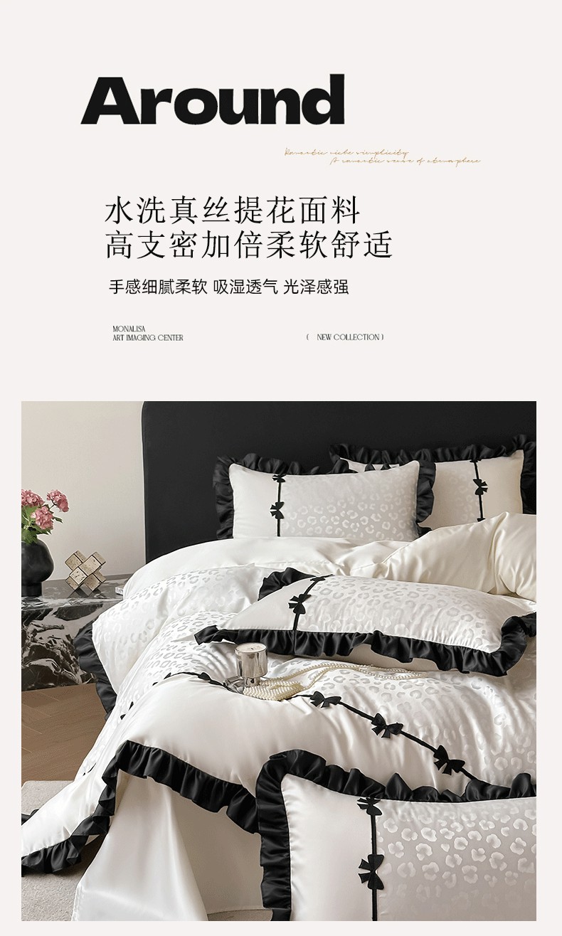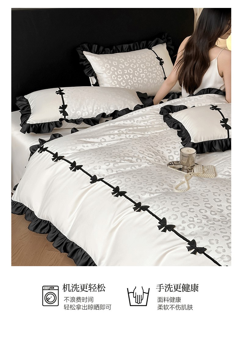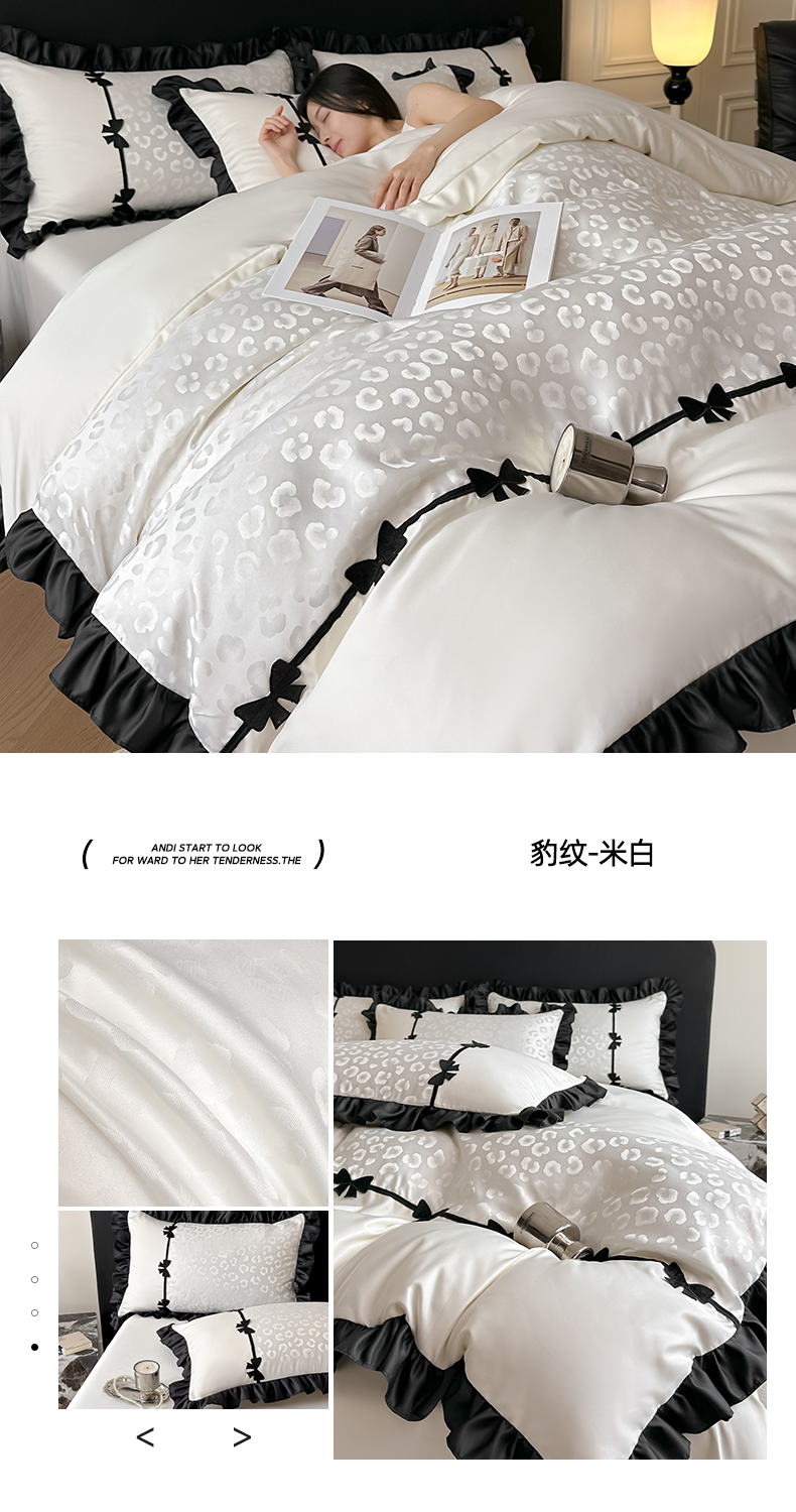商品名称:首尔家纺 2026新款水洗真丝拼接款豹纹提花四件套 豹纹-米白