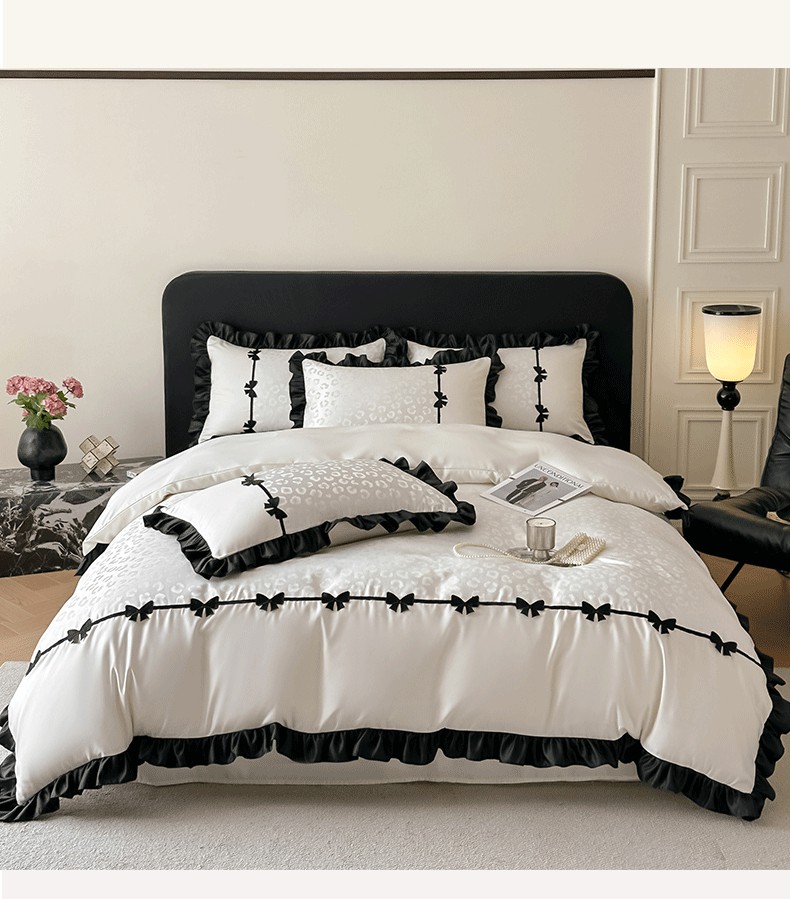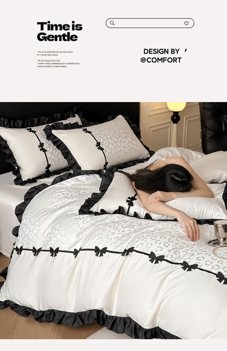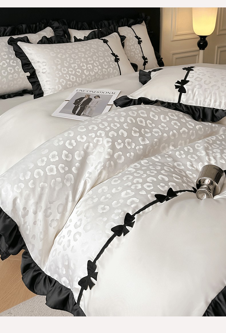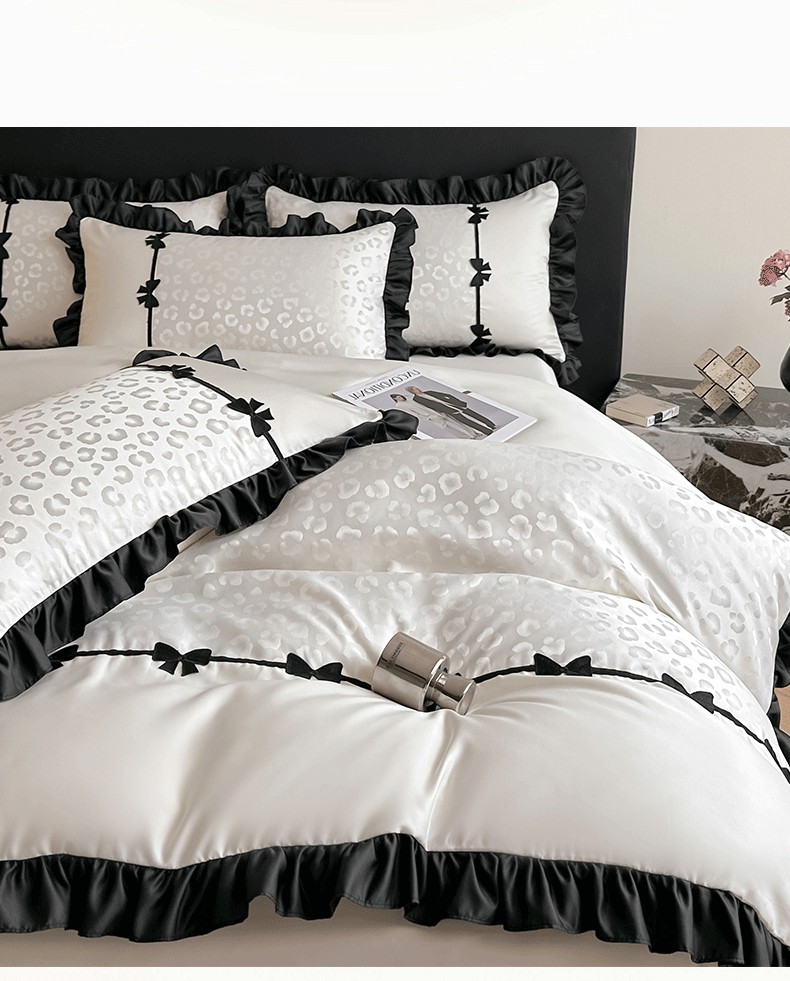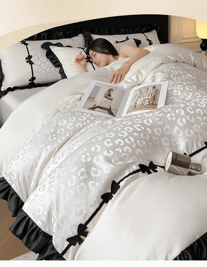 商品名称:首尔家纺 2026新款水洗真丝拼接款豹纹提花四件套 豹纹-米白