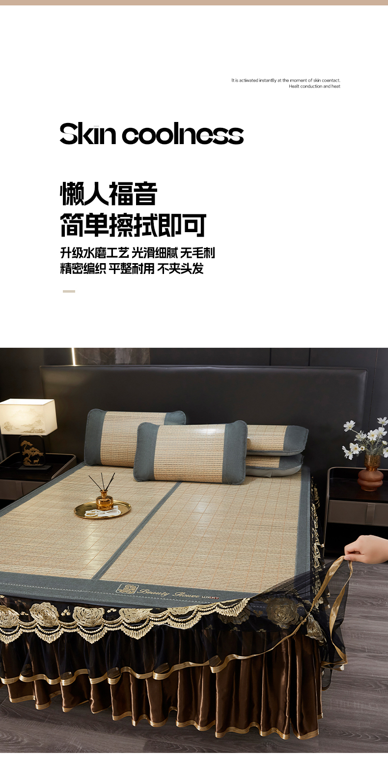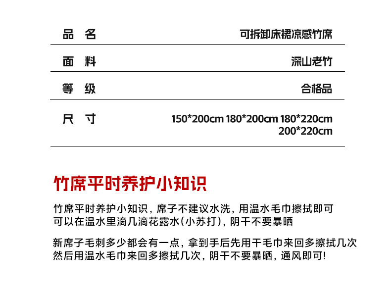 商品名称:(总)罗艺轩 2026春夏新款可拆卸床裙凉感竹席凉席席子-竹之韵(控价238/248/258/268起)