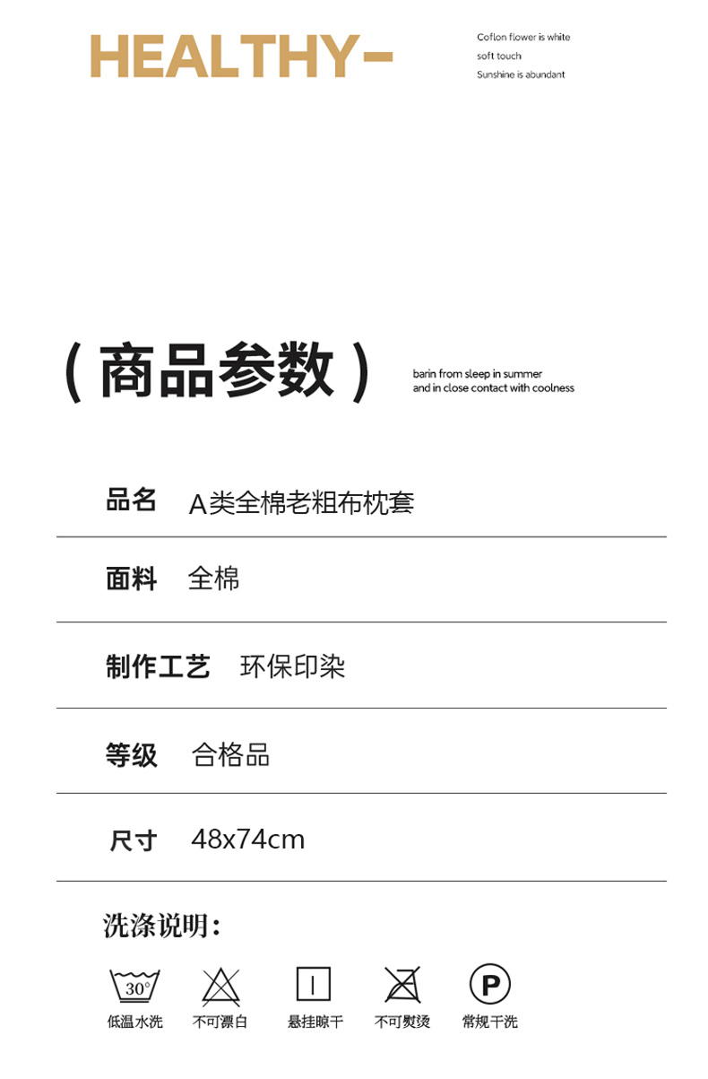 商品名称:春皖家纺 2026新款全棉老粗布普通款单枕套枕套单件 意境-咖
