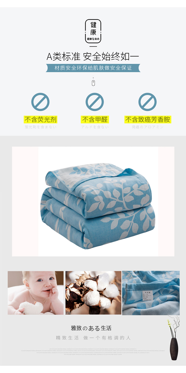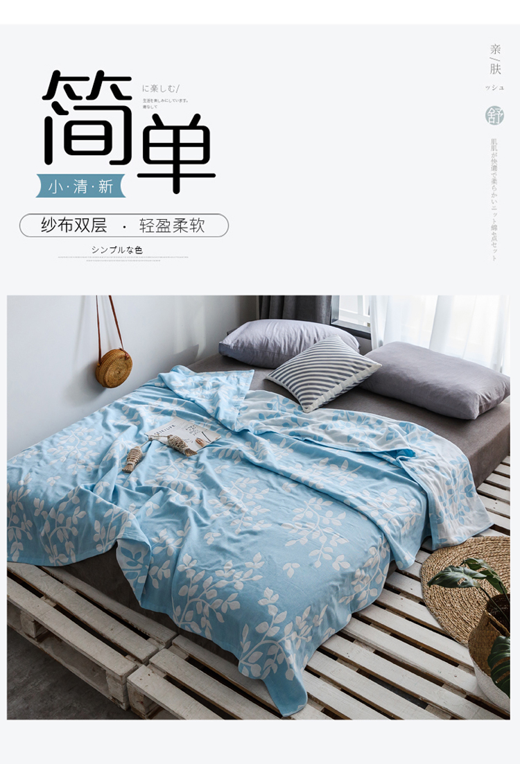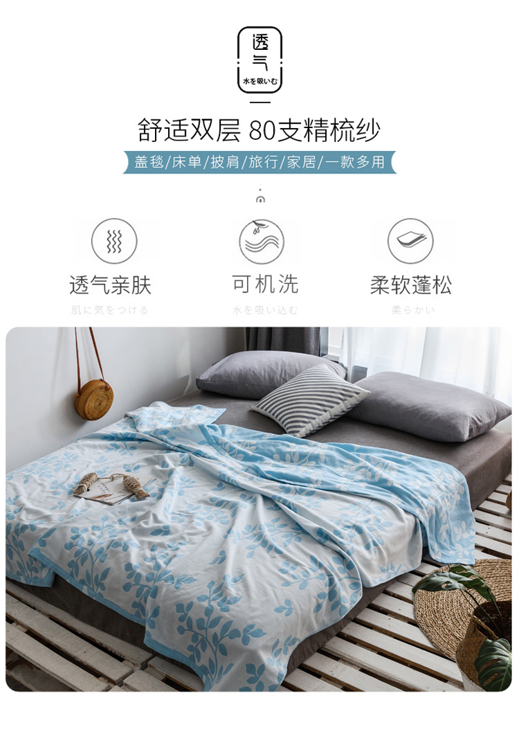 朴尔家纺 2020年新款双层全棉纱布毛巾被 枝繁叶茂-蓝