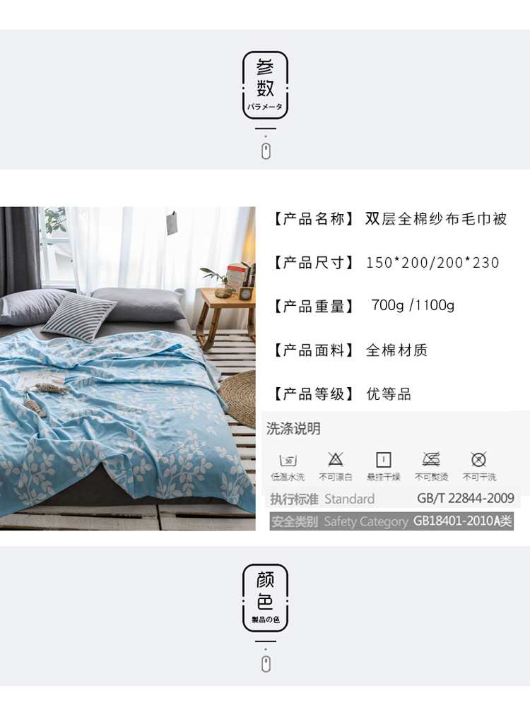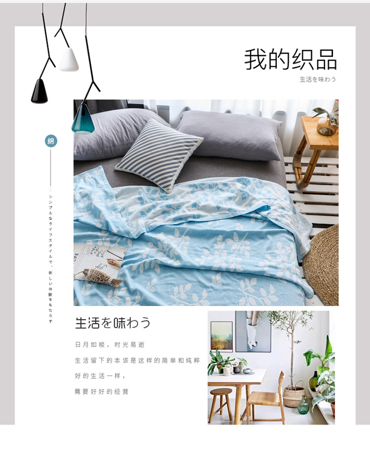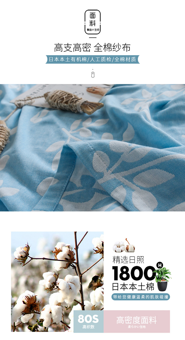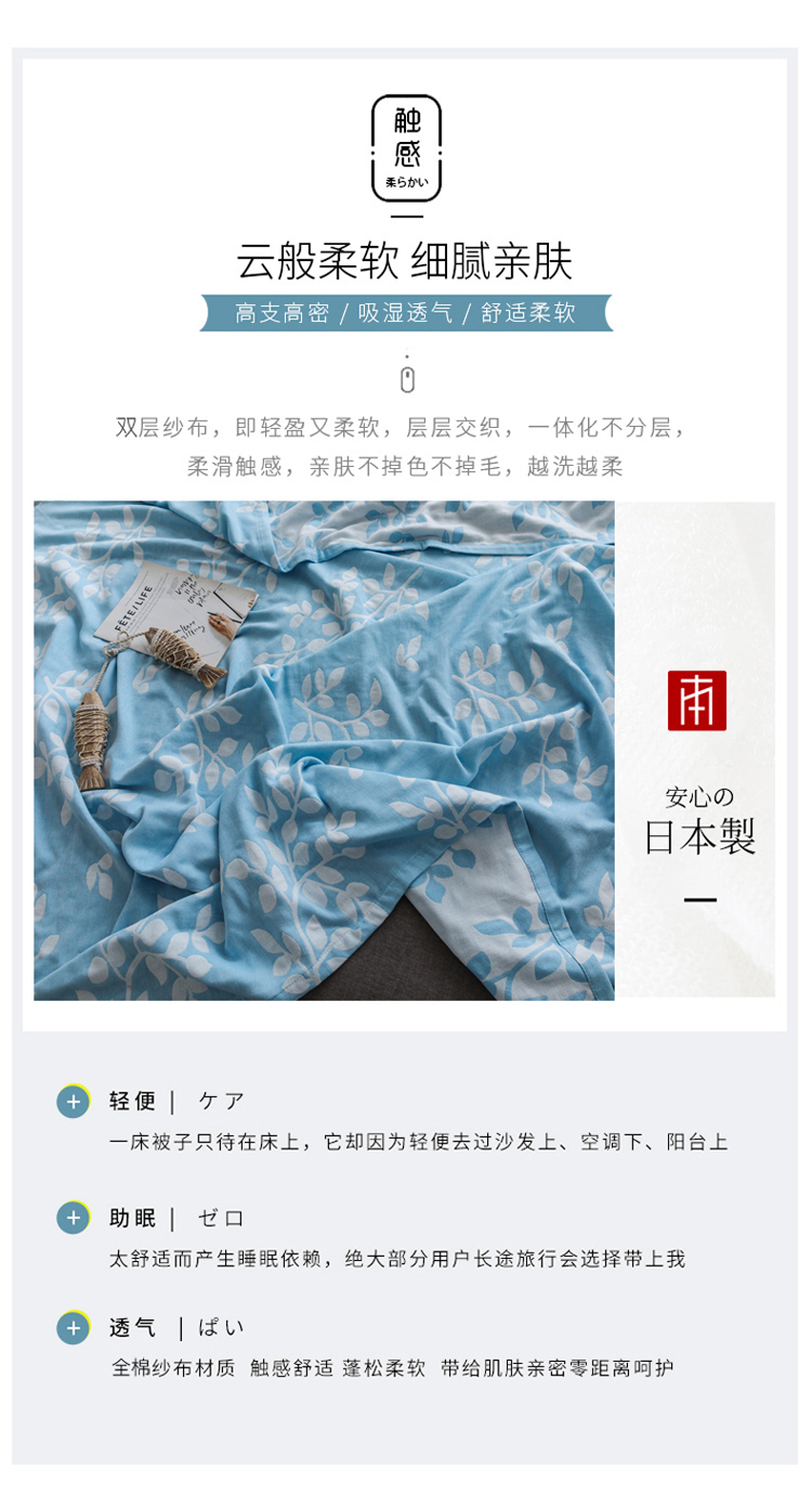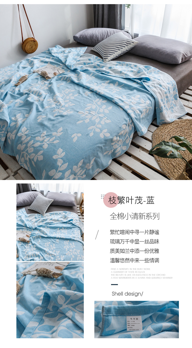 商品名称:朴尔家纺 2020年新款双层全棉纱布毛巾被 枝繁叶茂-蓝