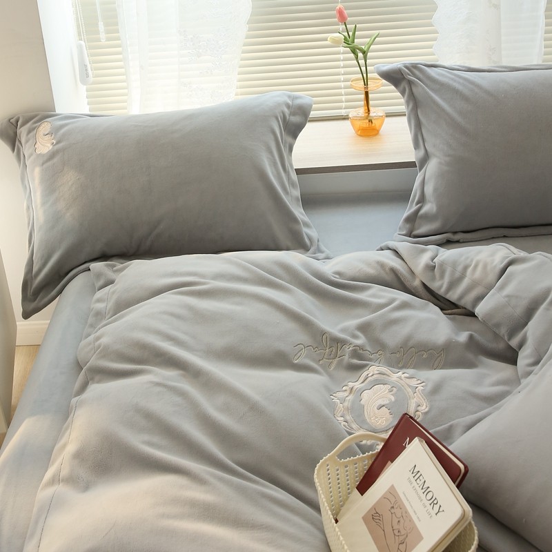 榻尚家居 2021新款清新柔暖绒四件套茱莉系列 茱莉灰