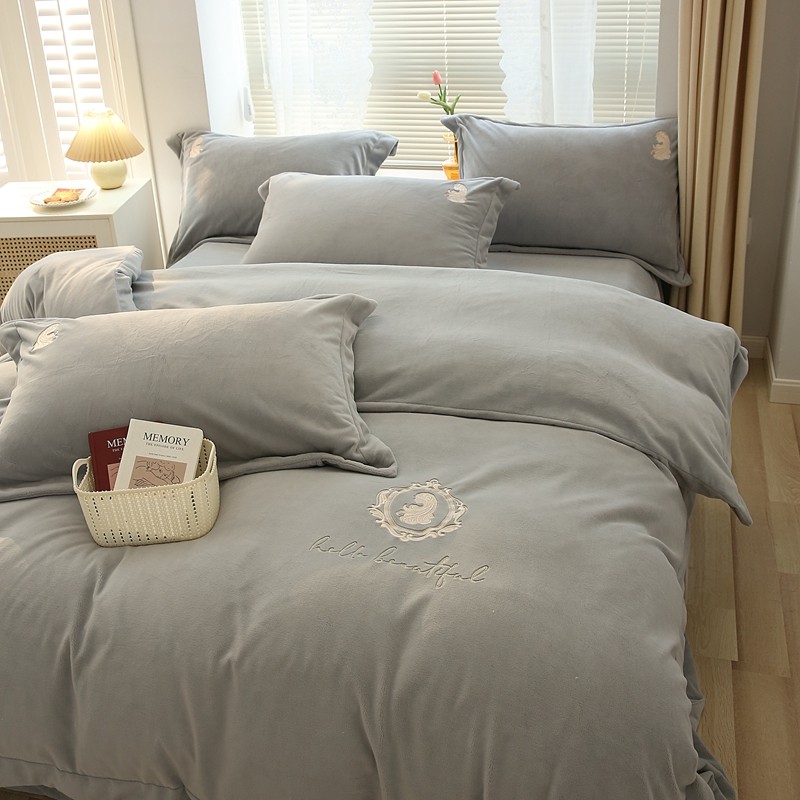 (总)榻尚家居 2025新款秋冬加厚绵阳绒牛奶绒四件套,绵阳绒灰色,绵阳绒蓝色,绵阳绒棕色