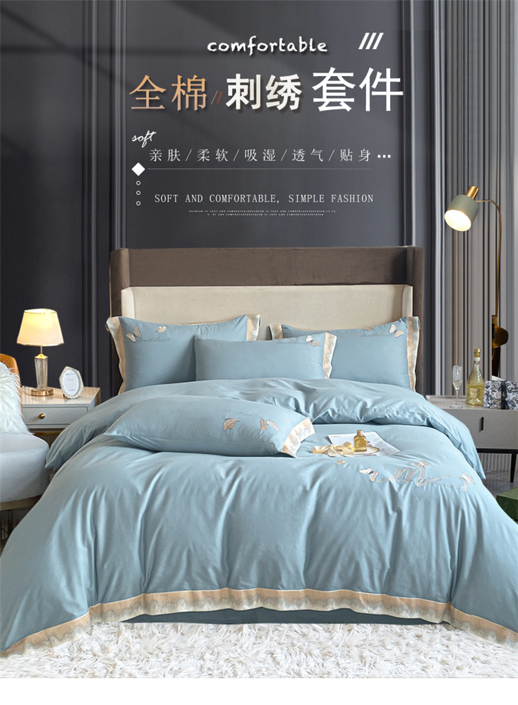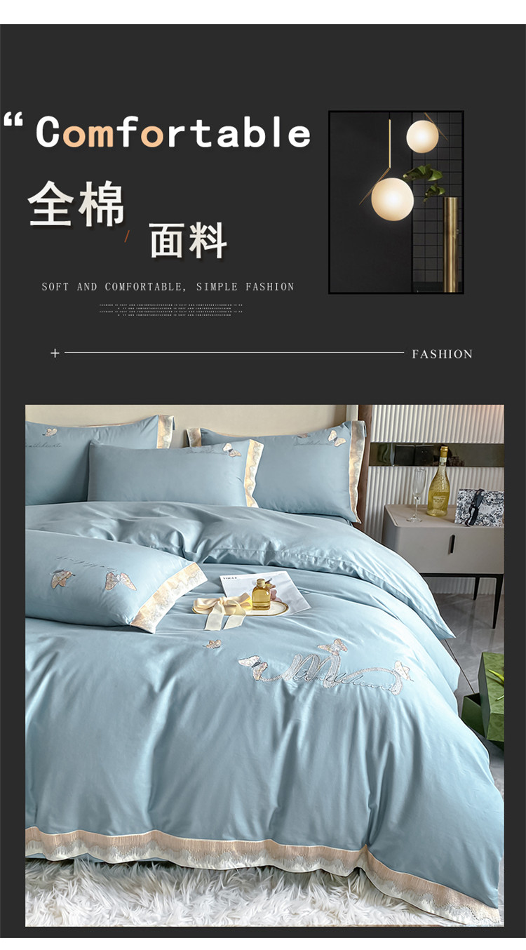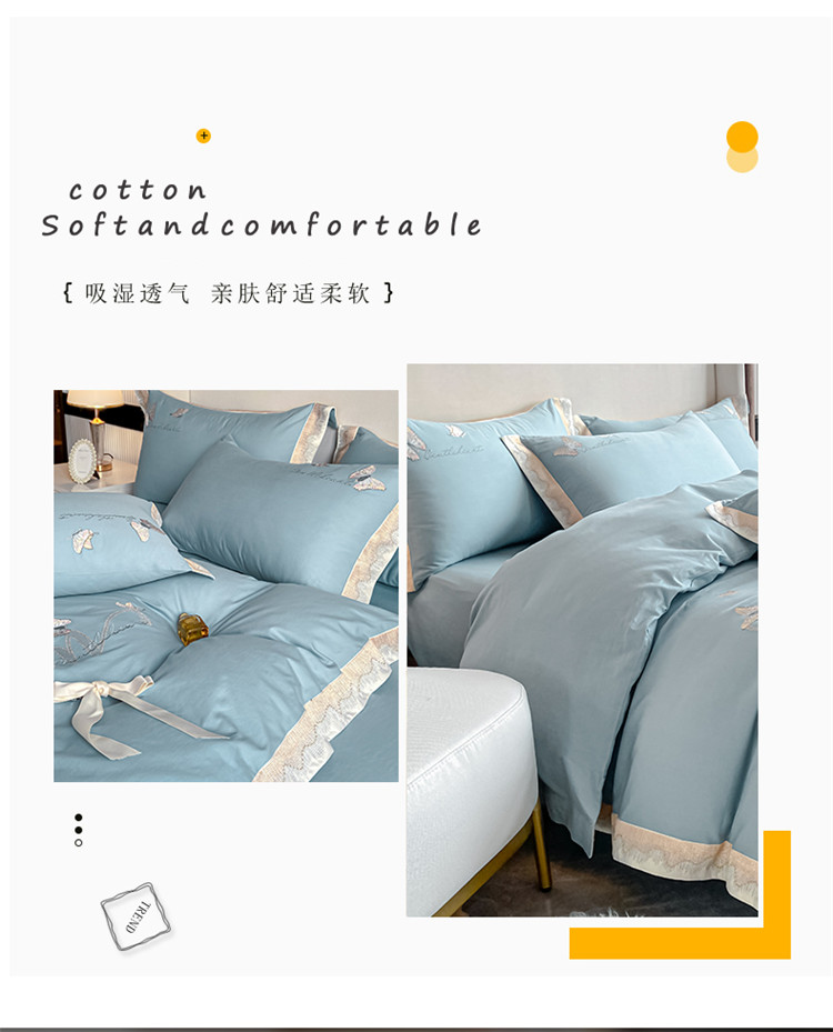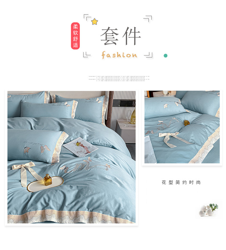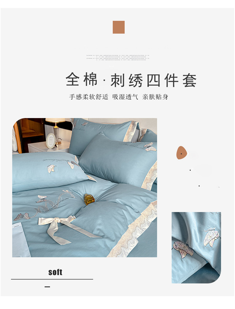 商品名称:安妮家居 2022新款全棉刺绣四件套-碟之恋 天蓝