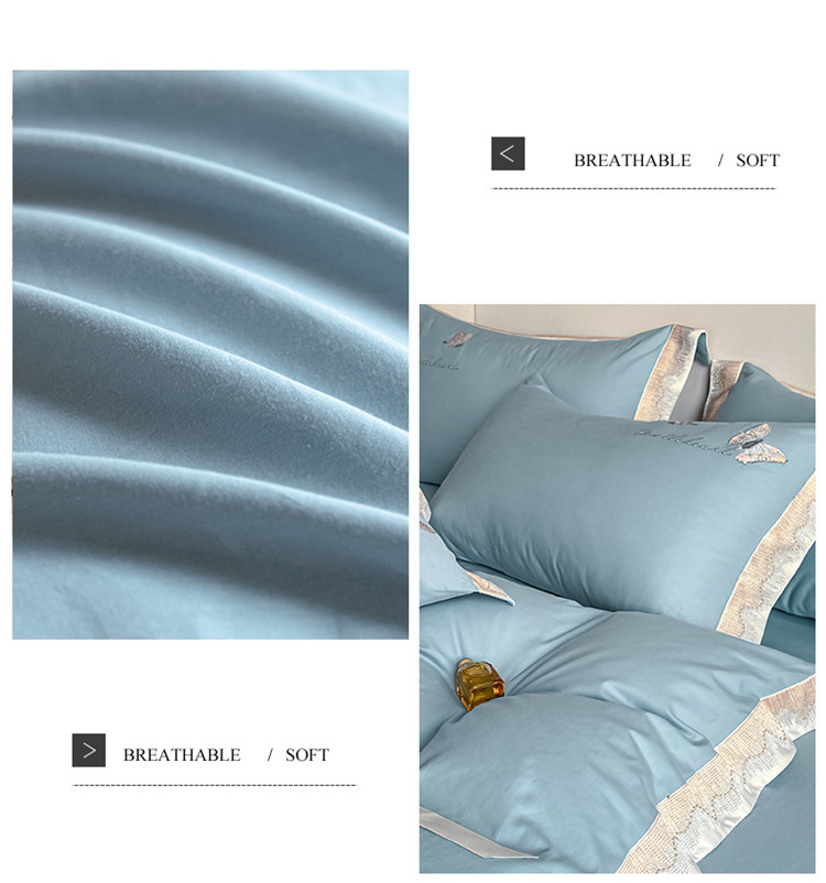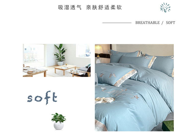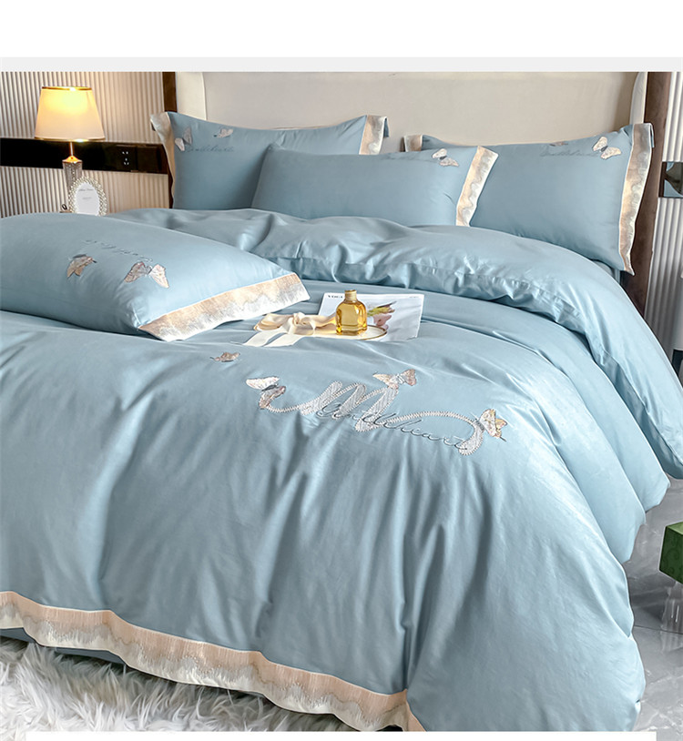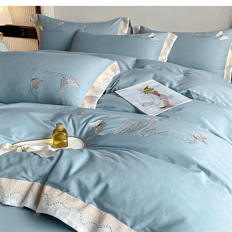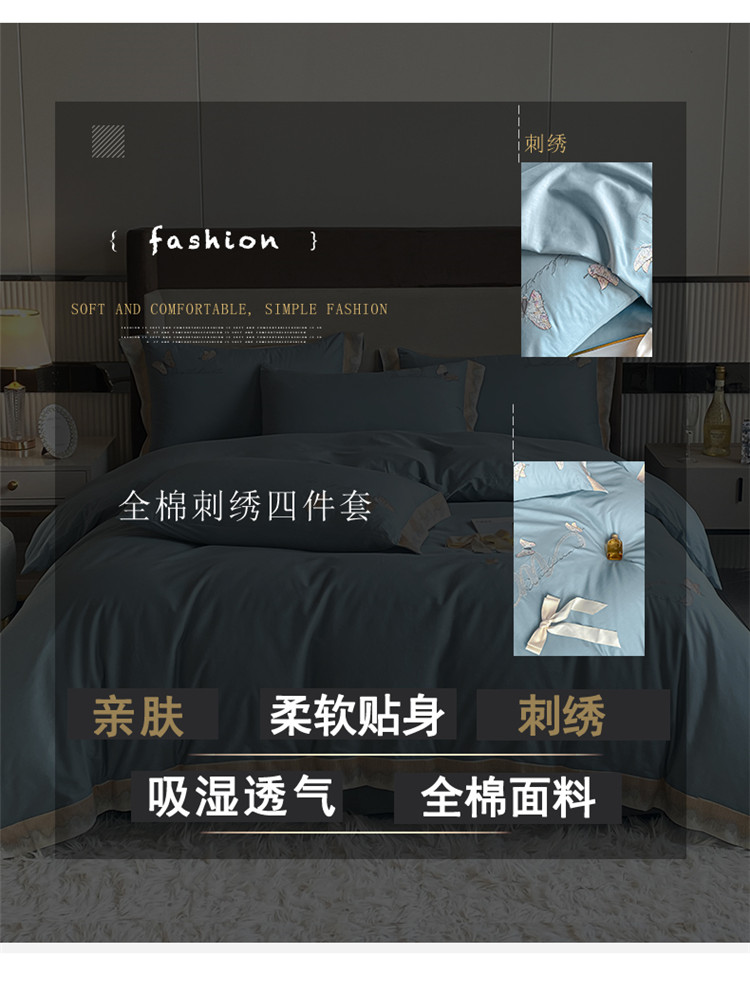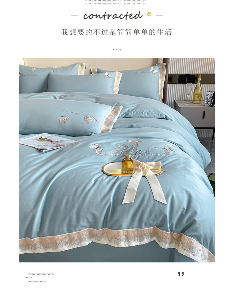 商品名称:安妮家居 2022新款全棉刺绣四件套-碟之恋 天蓝