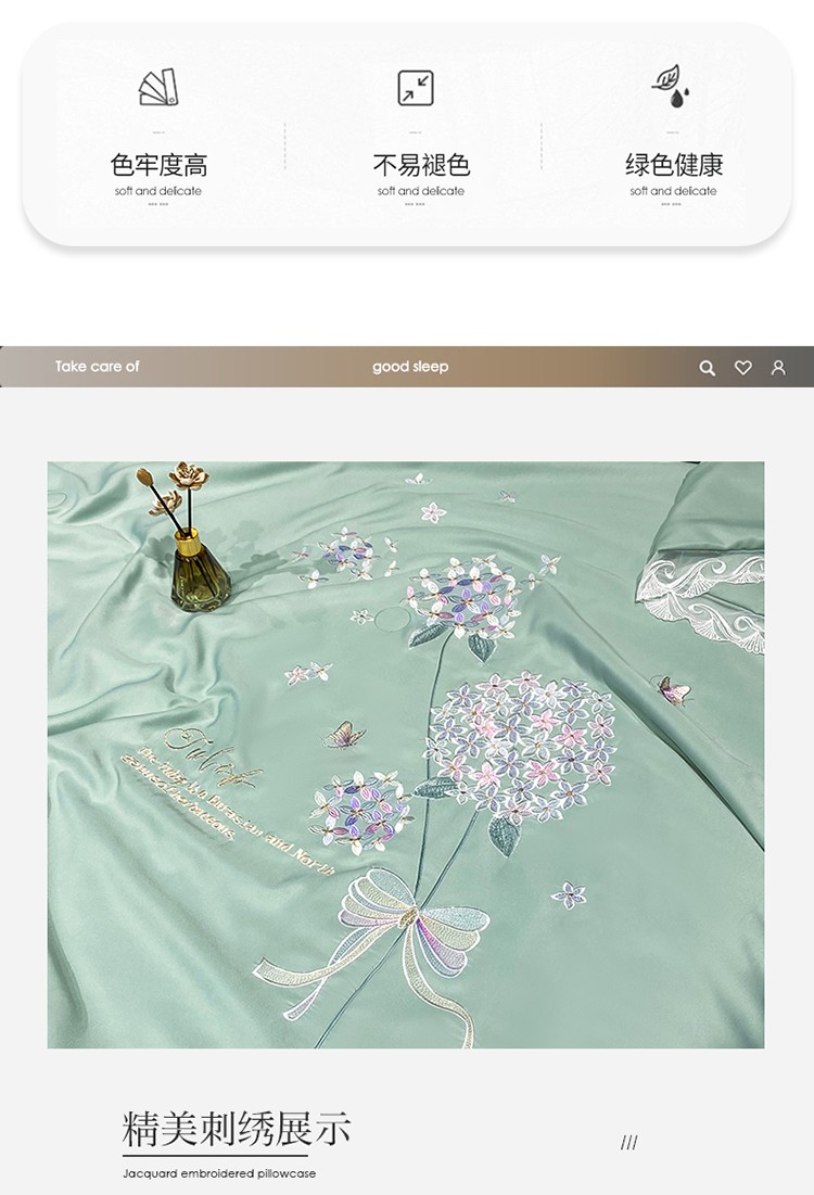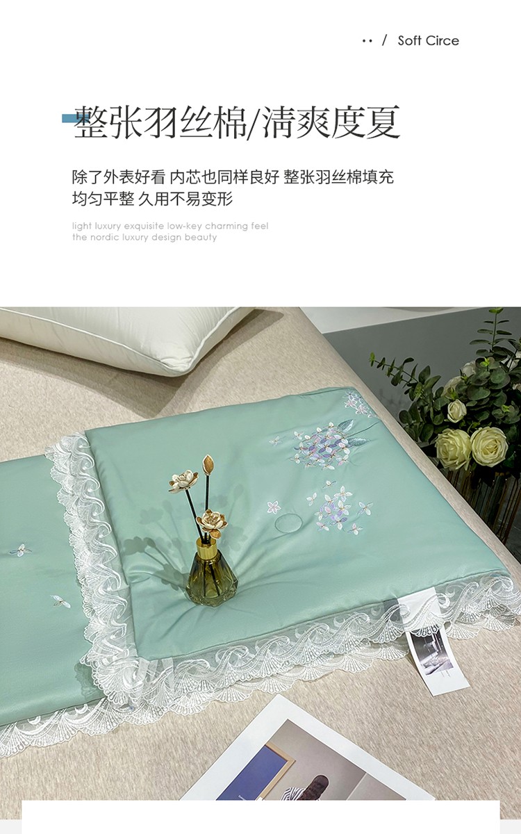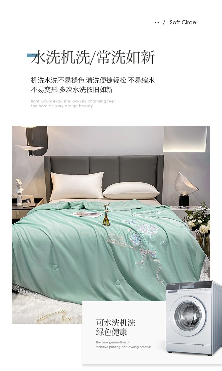 商品名称:吾秀 2022新款柔赛丝刺绣夏被-紫色爱恋 紫色爱恋-绿