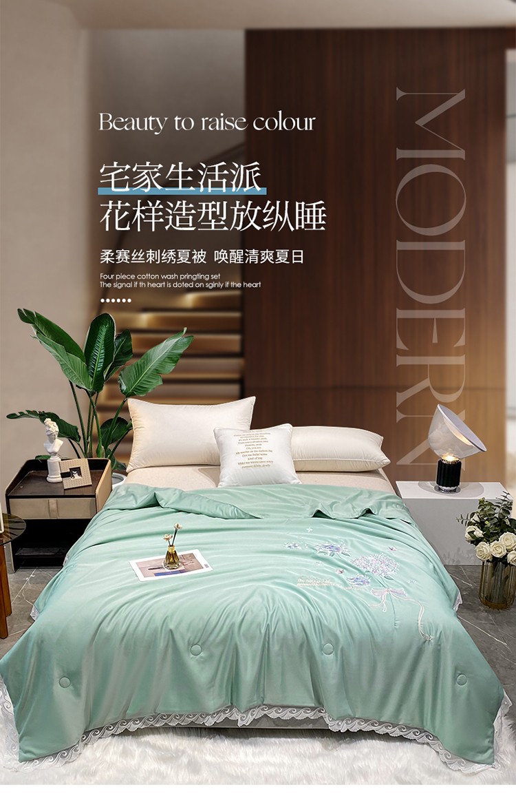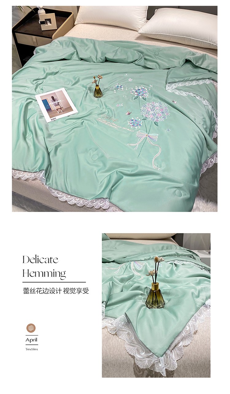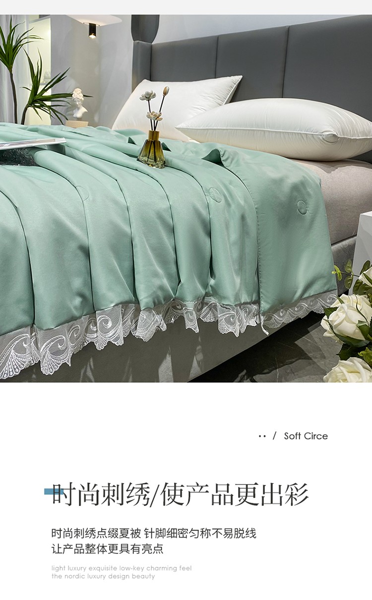 吾秀 2022新款柔赛丝刺绣夏被-紫色爱恋 紫色爱恋-绿