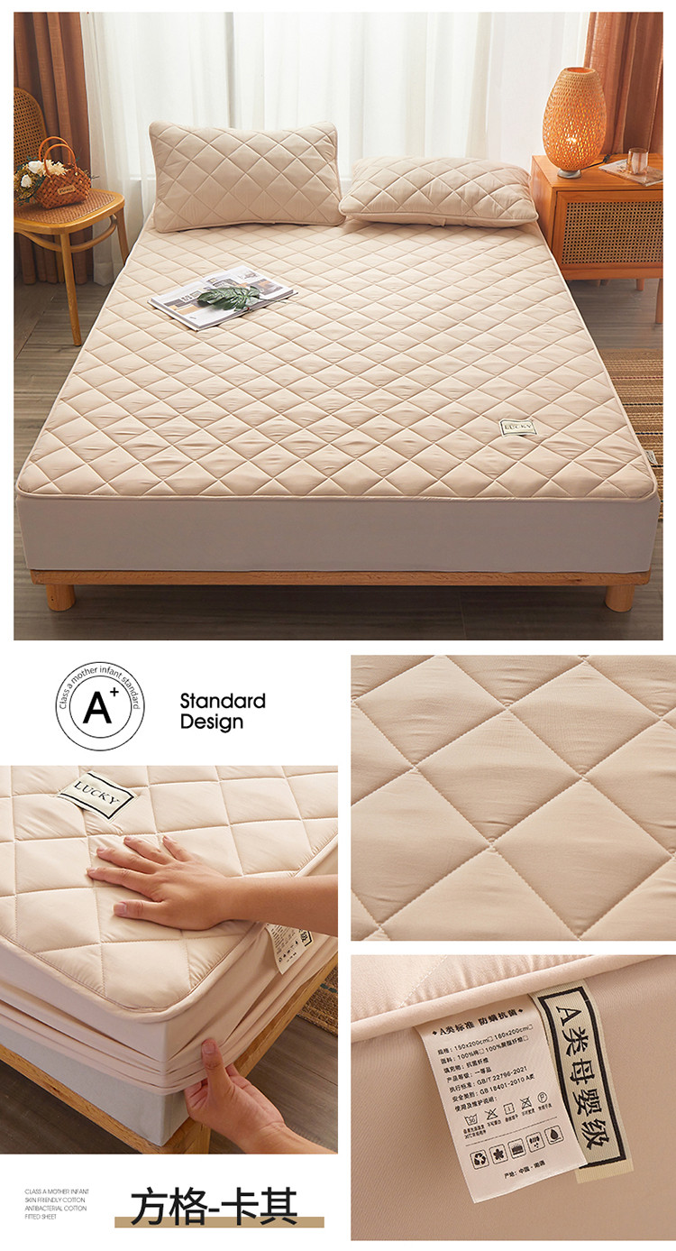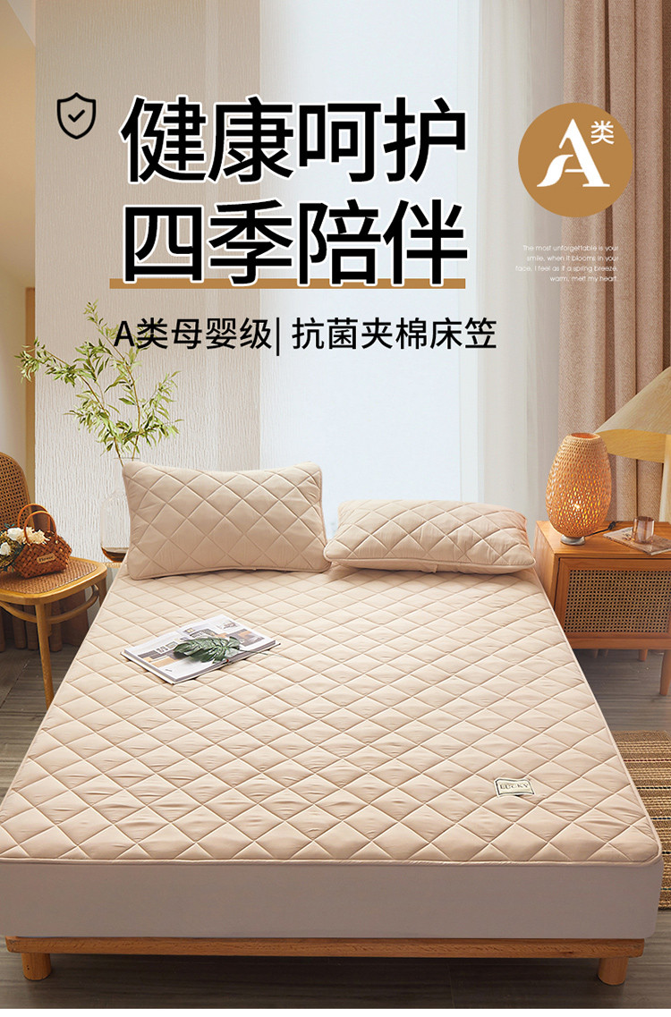 芬晴 2023新款A类全棉母婴级抗菌防螨夹棉床笠 方格-卡其