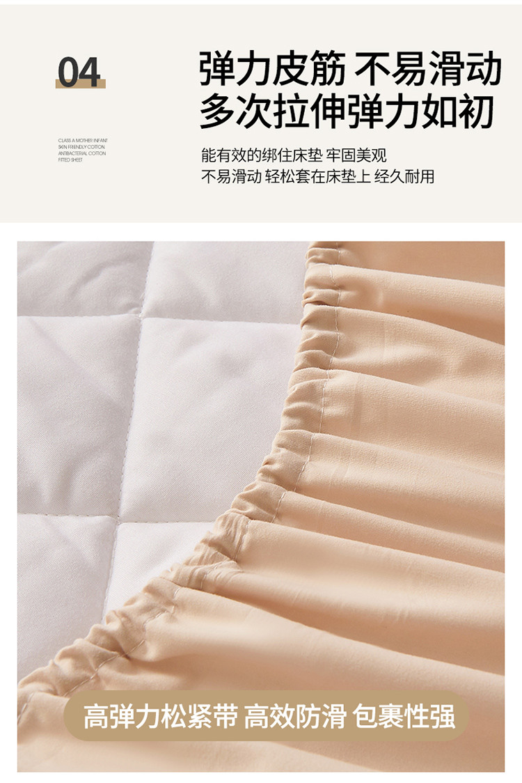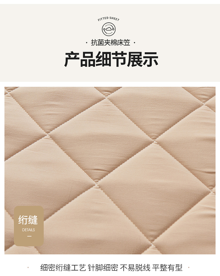 • 91家纺网 家纺一手货源 找家纺 芬晴 2023新款A类全棉母婴级抗菌防螨夹棉床笠 方格-卡其