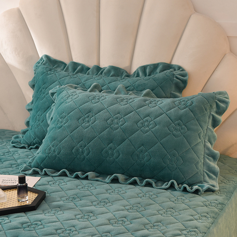 商品名称:甜之梦 2025新款牛奶绒夹棉纯色枕套48*74cm 湖绿