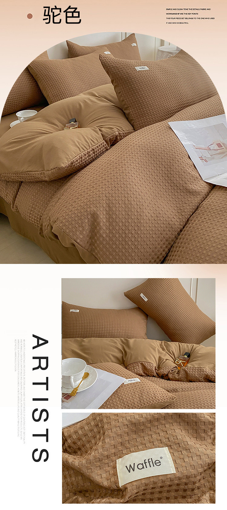 当前位置: 91家纺网 > 商品网购 > 床品套件 > 四件套 > 全棉普通四件套 > 仟网汇 2023爆款华夫格-森语系列 四件套 驼色