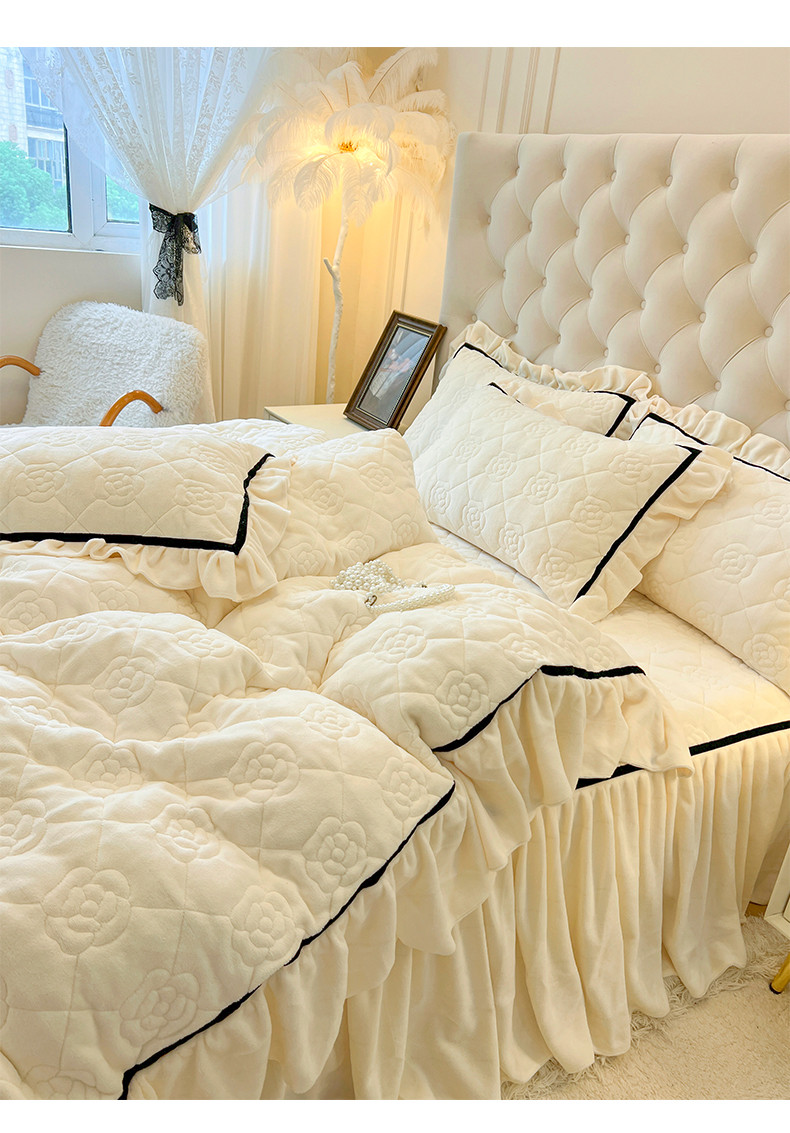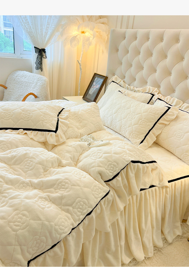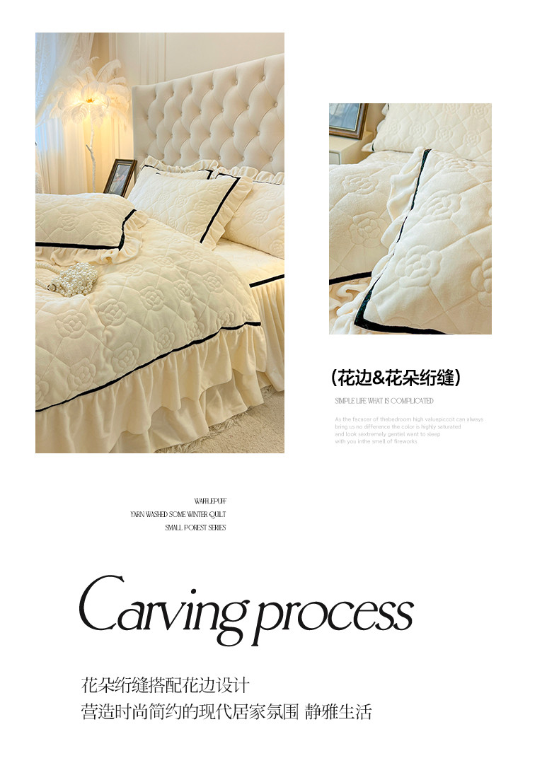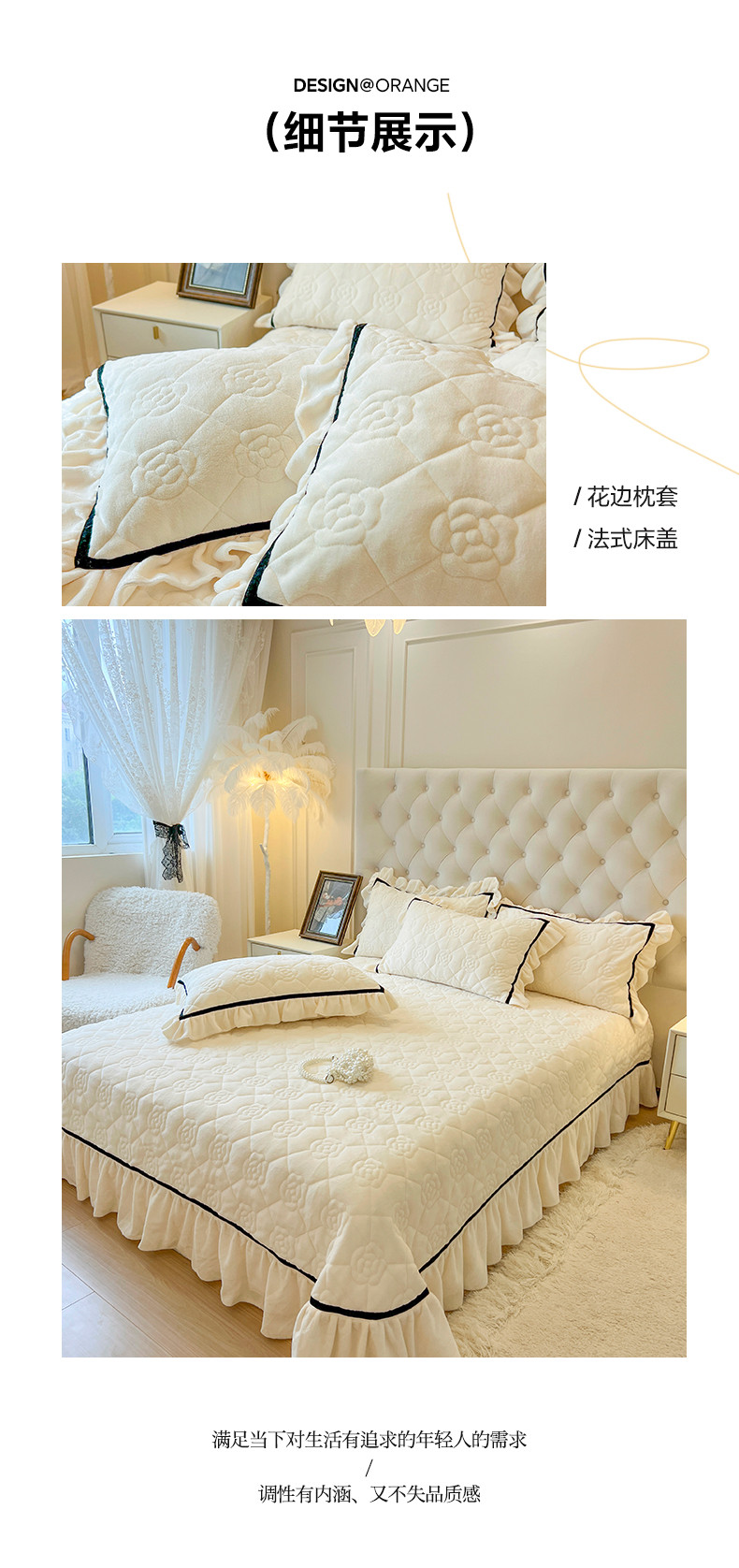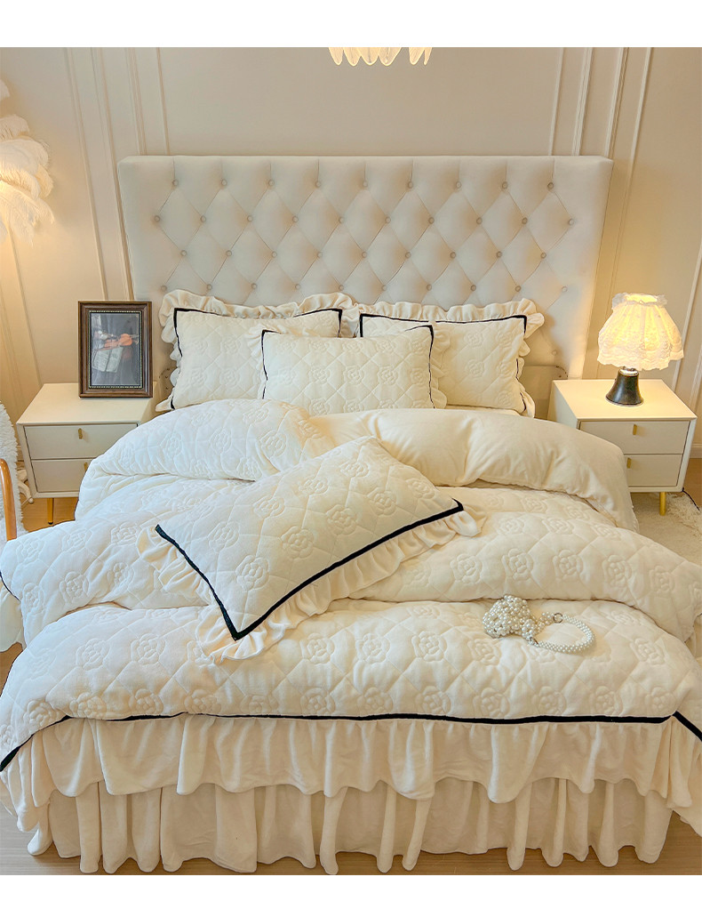 当前位置: 91家纺网 > 商品网购 > 床品套件 > 四件套 > 牛奶绒四件套 > 麒豆豆 新款高克重加厚保暖牛奶绒法式大花边四件套-眷恋 眷恋-元气白