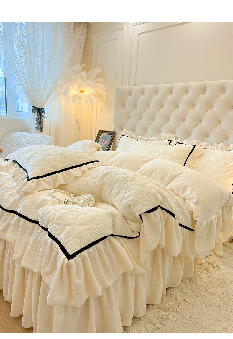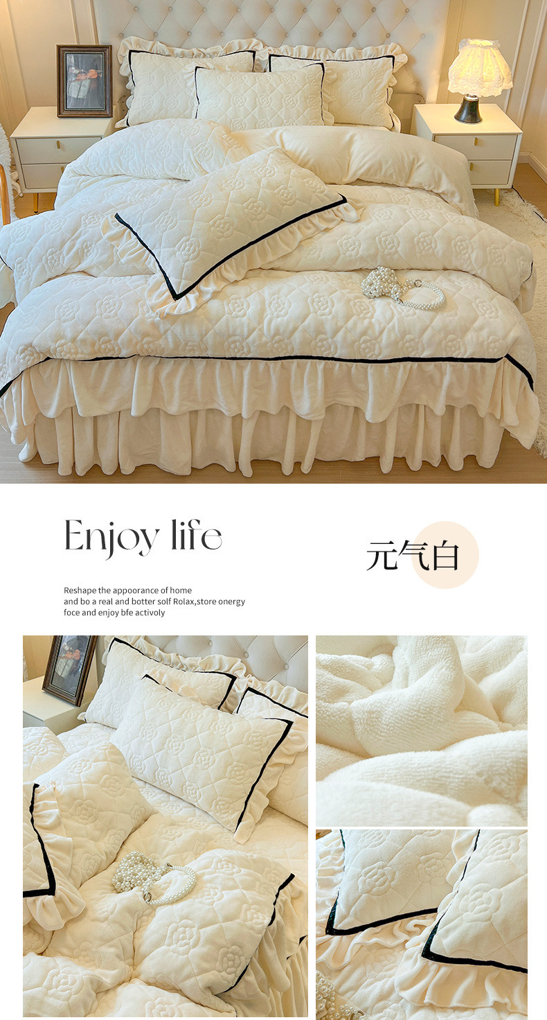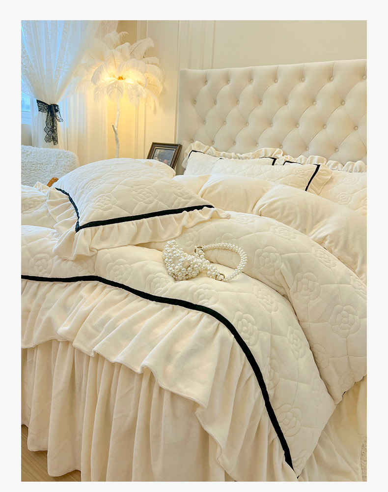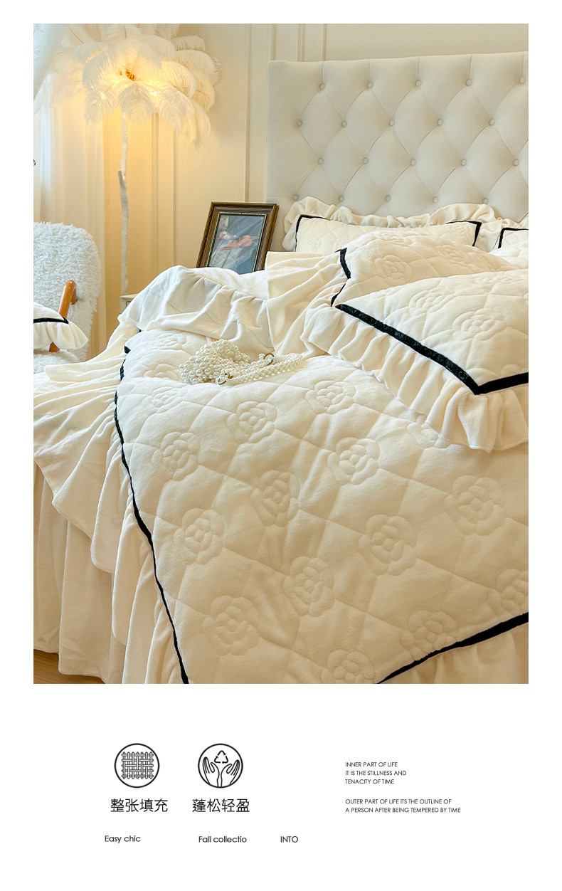 当前位置: 91家纺网 > 商品网购 > 床品套件 > 四件套 > 牛奶绒四件套 > 麒豆豆 新款高克重加厚保暖牛奶绒法式大花边四件套-眷恋 眷恋-元气白