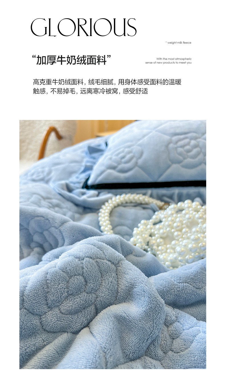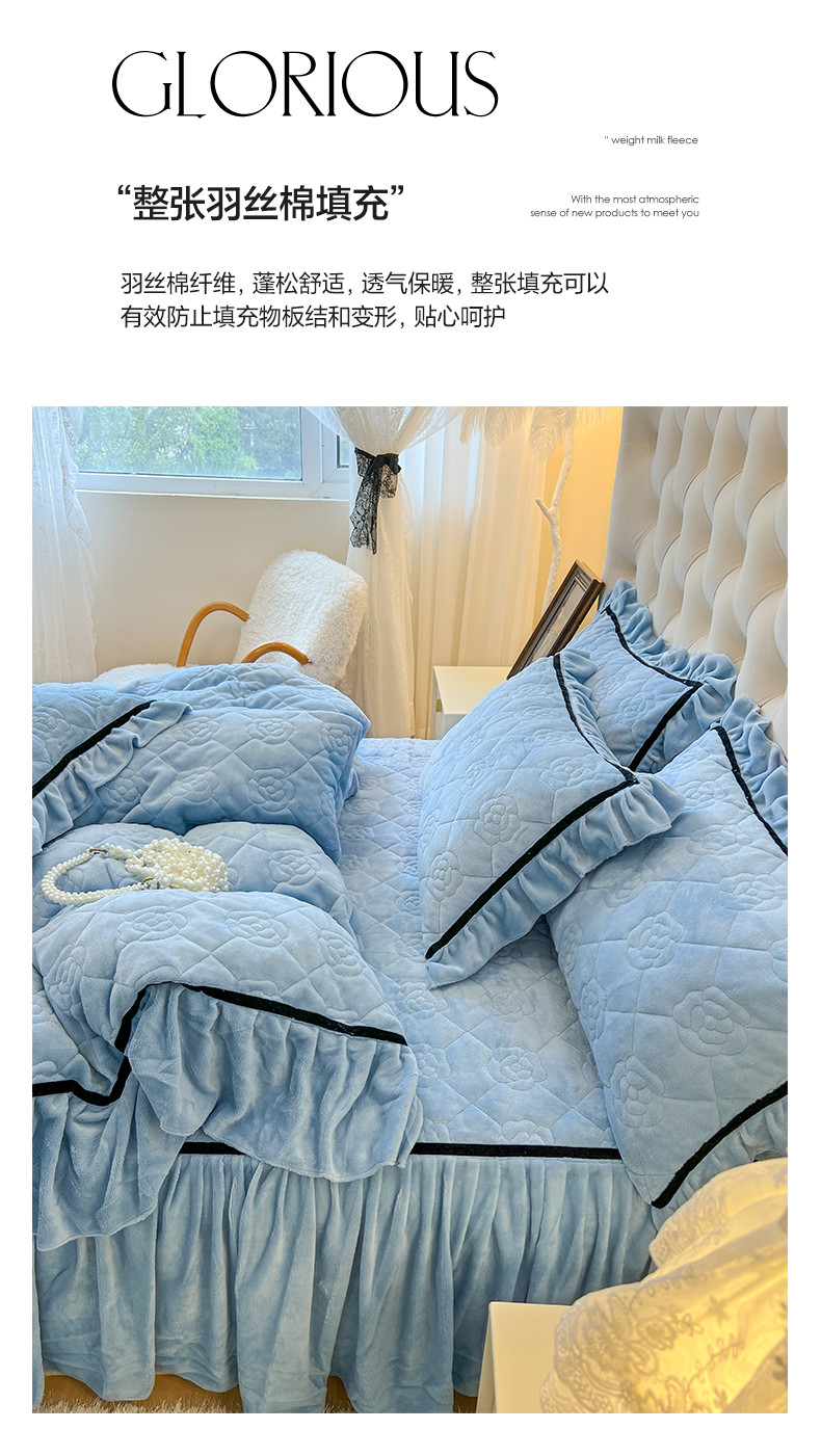 商品名称:麒豆豆 2023新款高克重加厚保暖牛奶绒眷恋系列单床裙 眷恋-天空蓝
