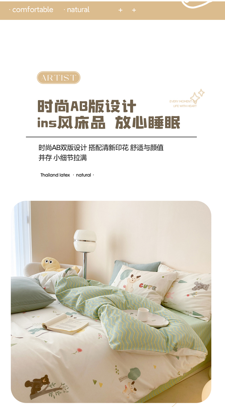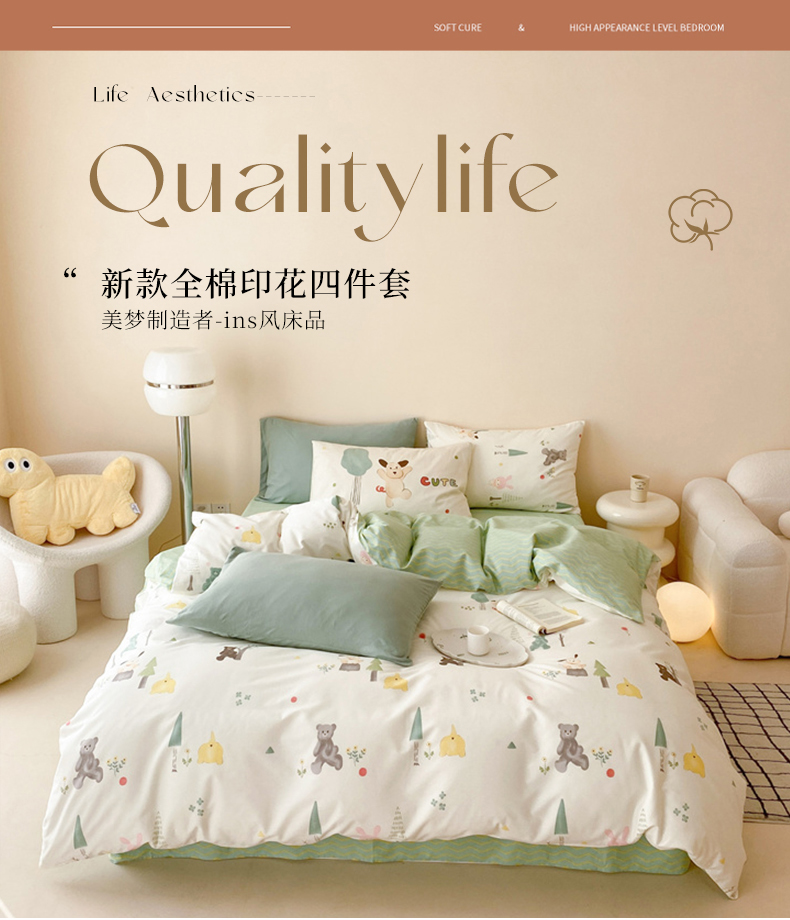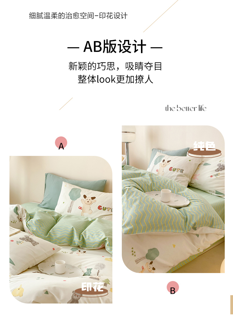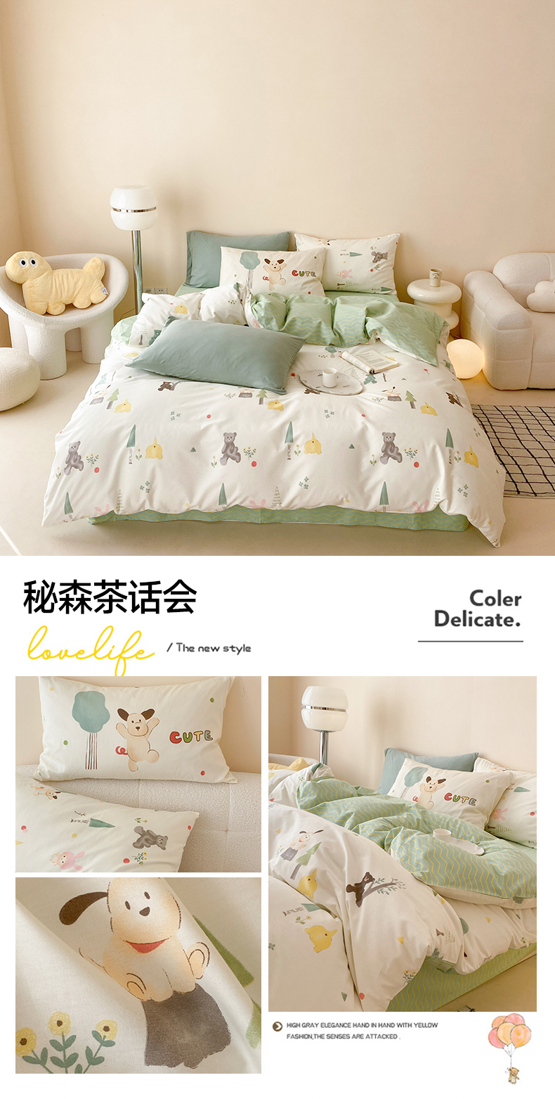 (总)佰亿莱 2024直播爆款小清新简约风全棉加厚磨毛四件套,爱心格,波浪兔,花萌,花园兔,咖啡熊,萌萌狗,时尚花季,时尚恐龙,田园花,郁金香,格韵,黑大格,简约-蓝,简约-绿,洛卡灰,绿格,斯诺克,银杏,羽叶,云舒粉