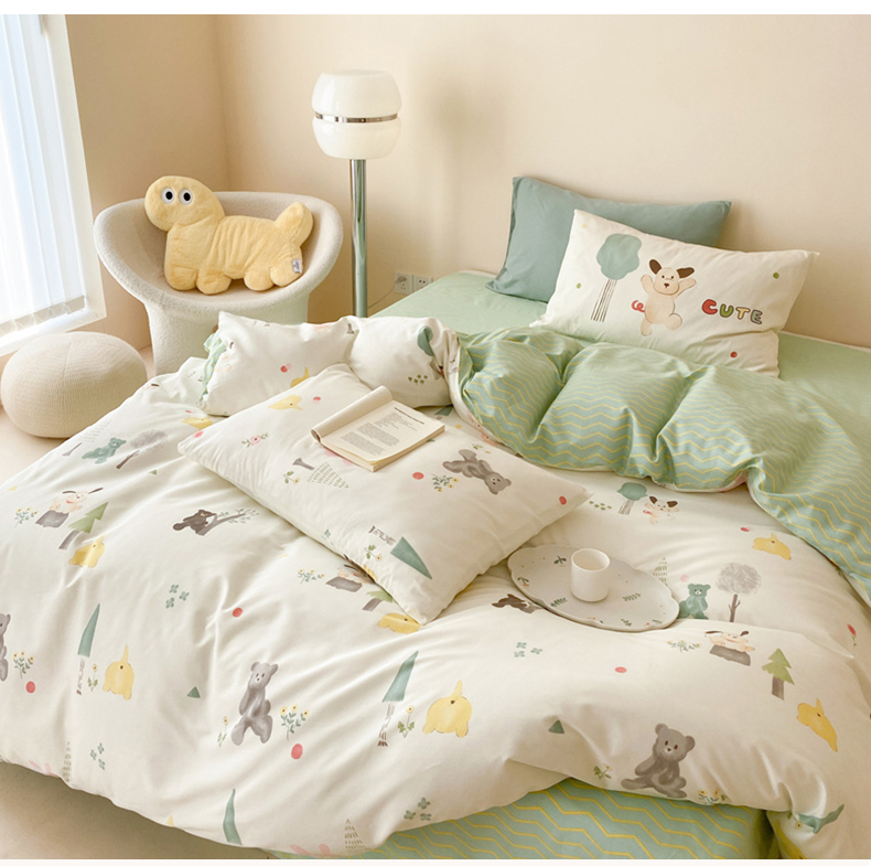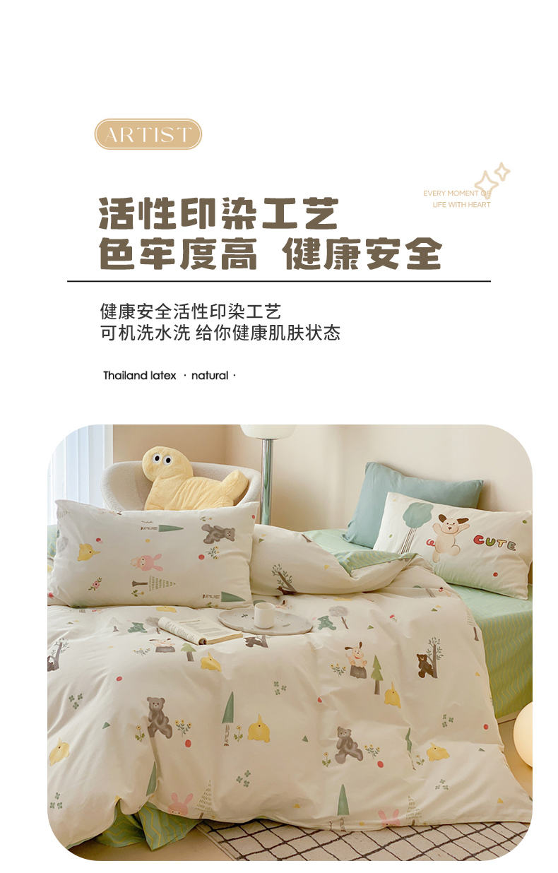 (总)佰亿莱 2024直播新款小清新印花全棉加厚磨毛四件套,爱心格,波浪兔,花萌,花园兔,咖啡熊,萌萌狗,时尚花季,时尚恐龙,田园花,郁金香