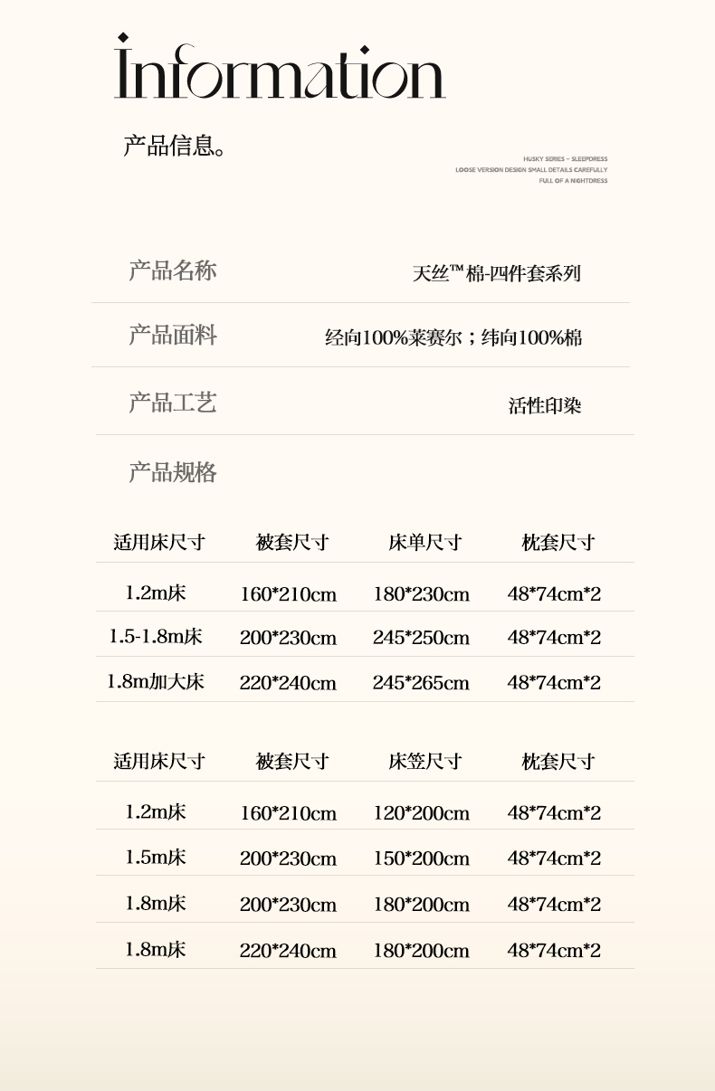 当前位置: 91家纺网 > 商品网购 > 床品套件 > 四件套 > 莱赛尔四件套 > 涵宸 2024新款兰精天丝棉纯色四件套 四件套-象牙白+奶茶杏