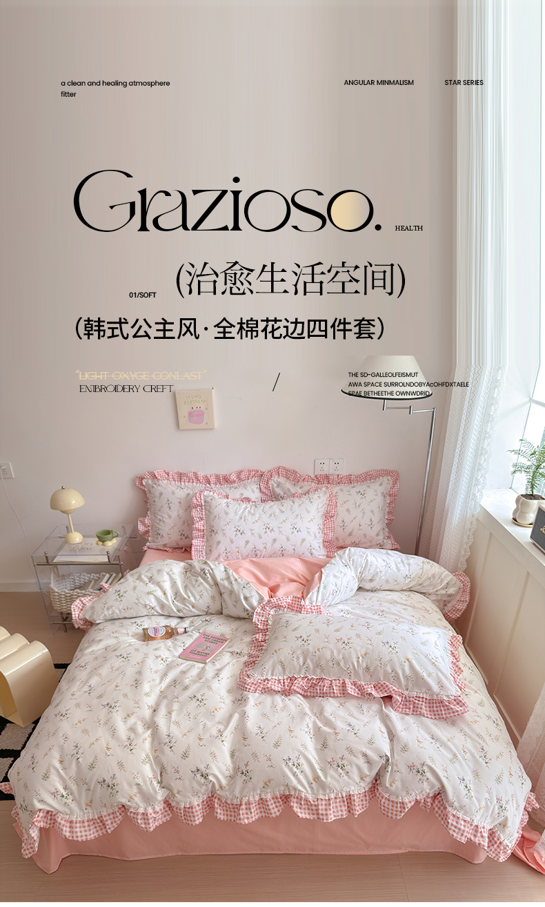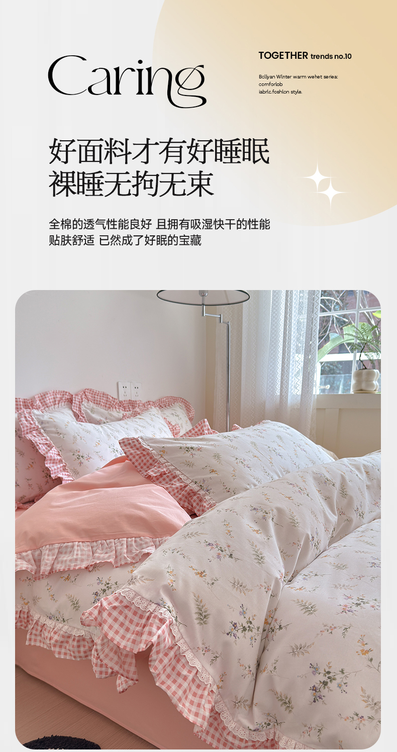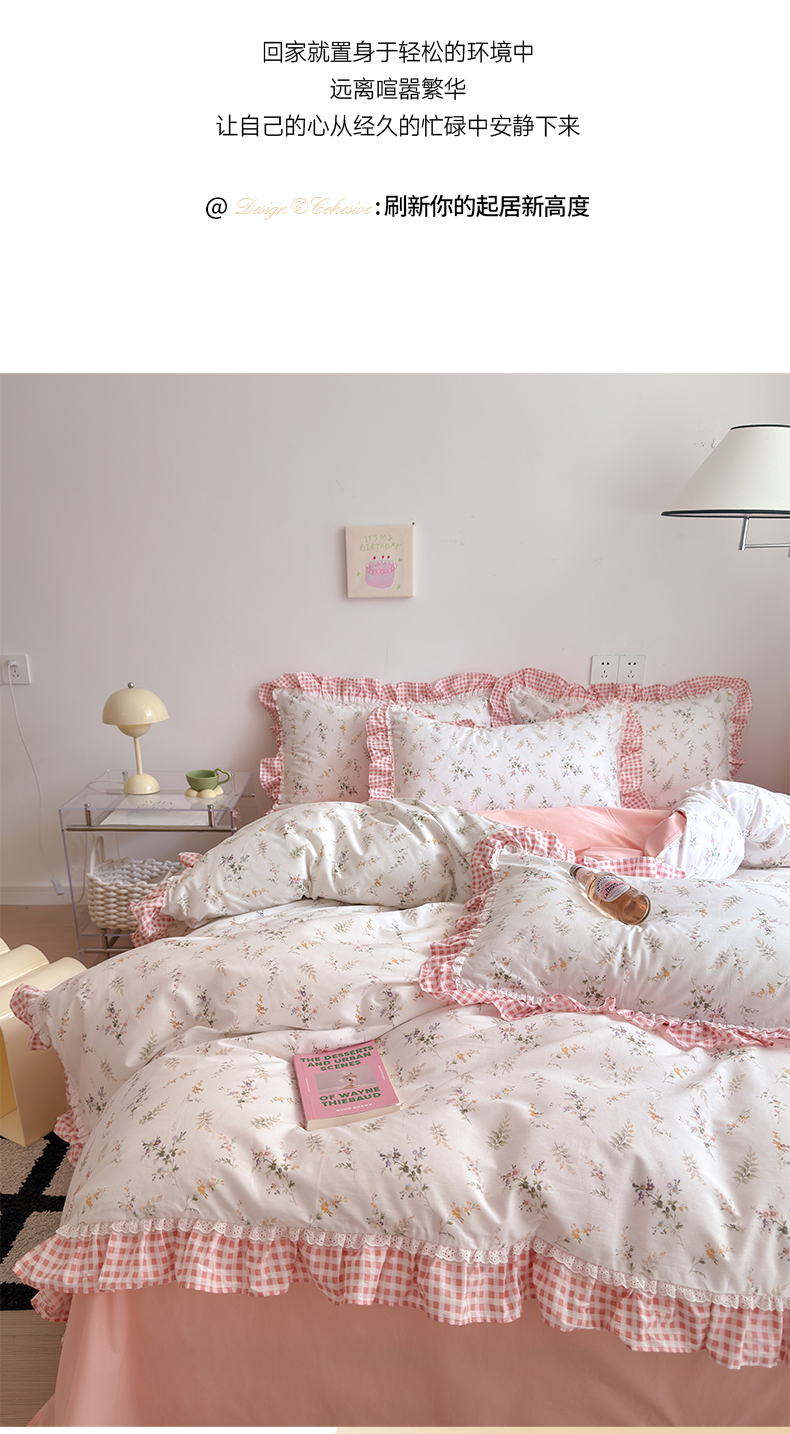 沐棉 2024新款韩式公主风全棉花边四件套 含香