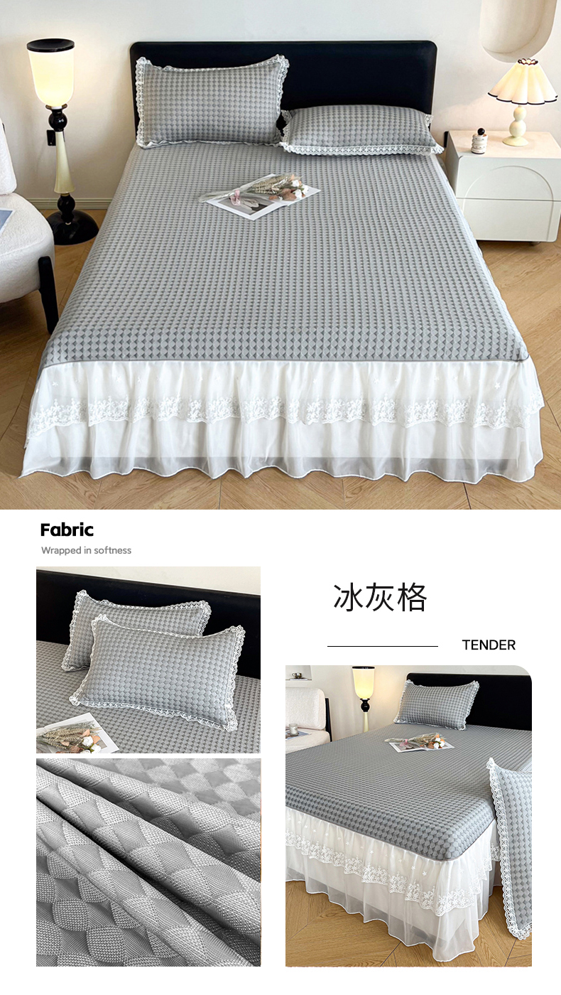 商品名称:吉祥家纺 2024新款华夫格冰豆豆凉感床裙套件 冰灰格