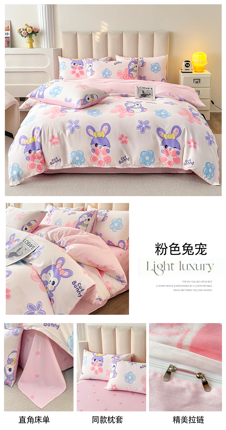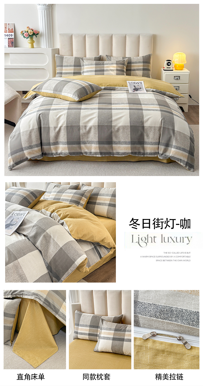 商品名称:(总)宇彬家纺 2026直播新款13070全棉纯棉印花床单床笠款四件套和单被套喷气清新简约(缩水足可定做)