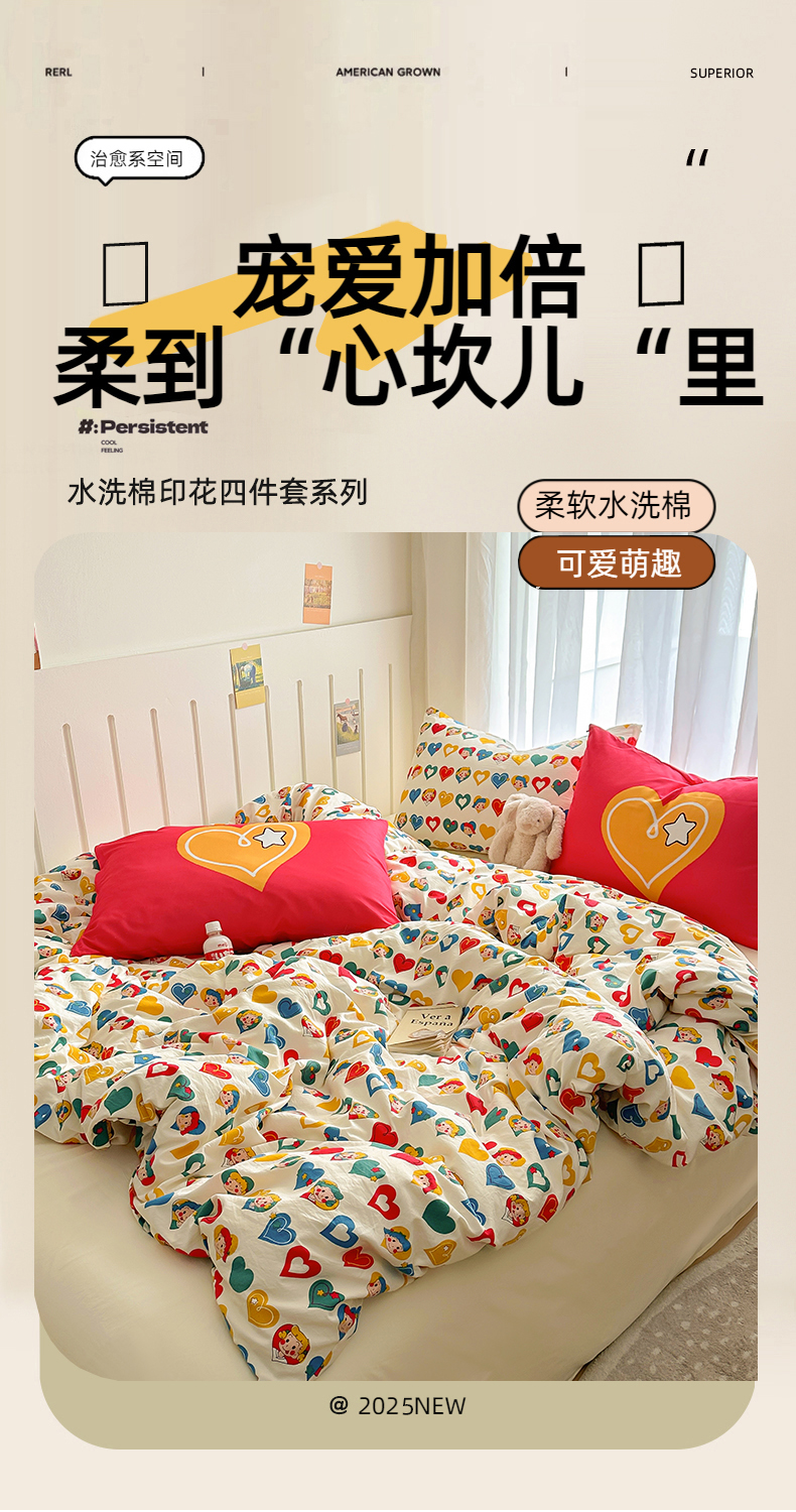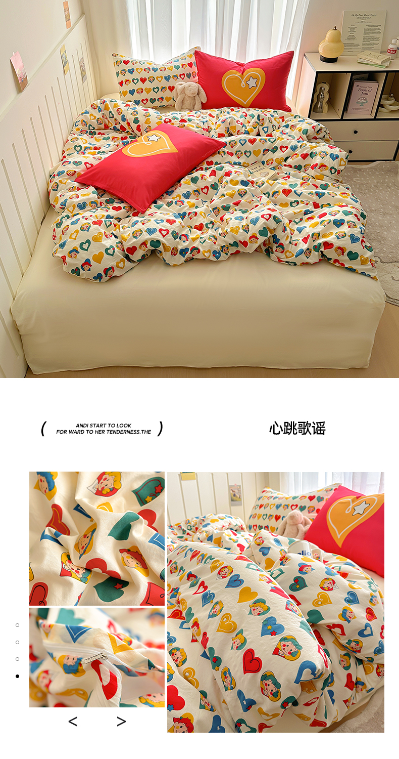 当前位置: 91家纺网 > 商品网购 > 床品套件 > 四件套 > 水洗棉四件套 > 春光里 2025新款水洗棉印花系列四件套 心跳歌谣