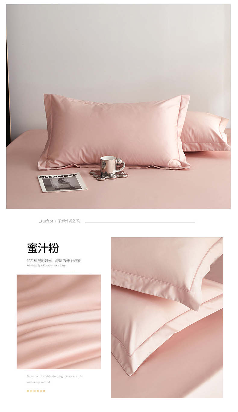 商品名称:2025年新款100支纯棉长绒棉全棉贡缎纯色枕套 蜜汁粉