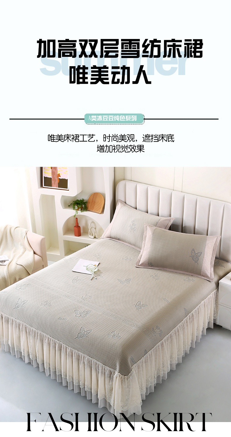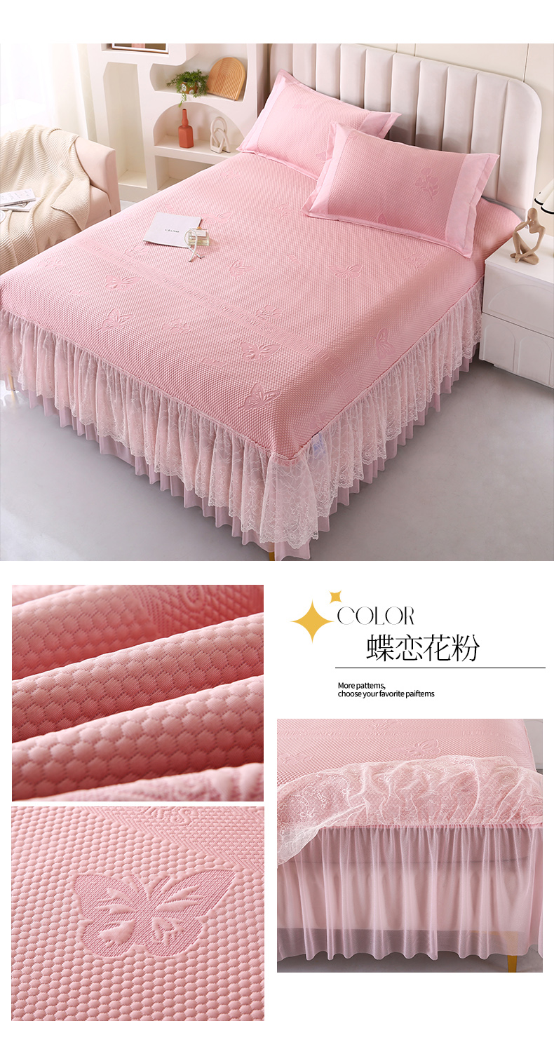 商品名称:莱轩席业 2025新款A类加厚豆豆床裙款凉席 蝶恋花粉