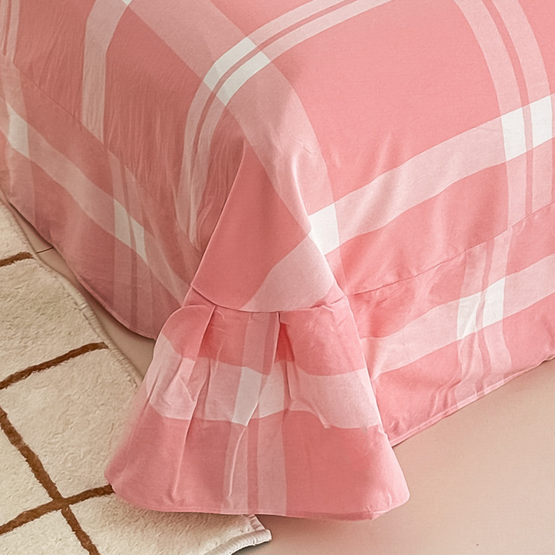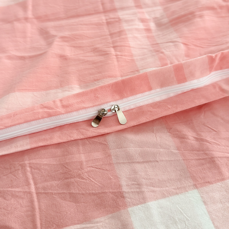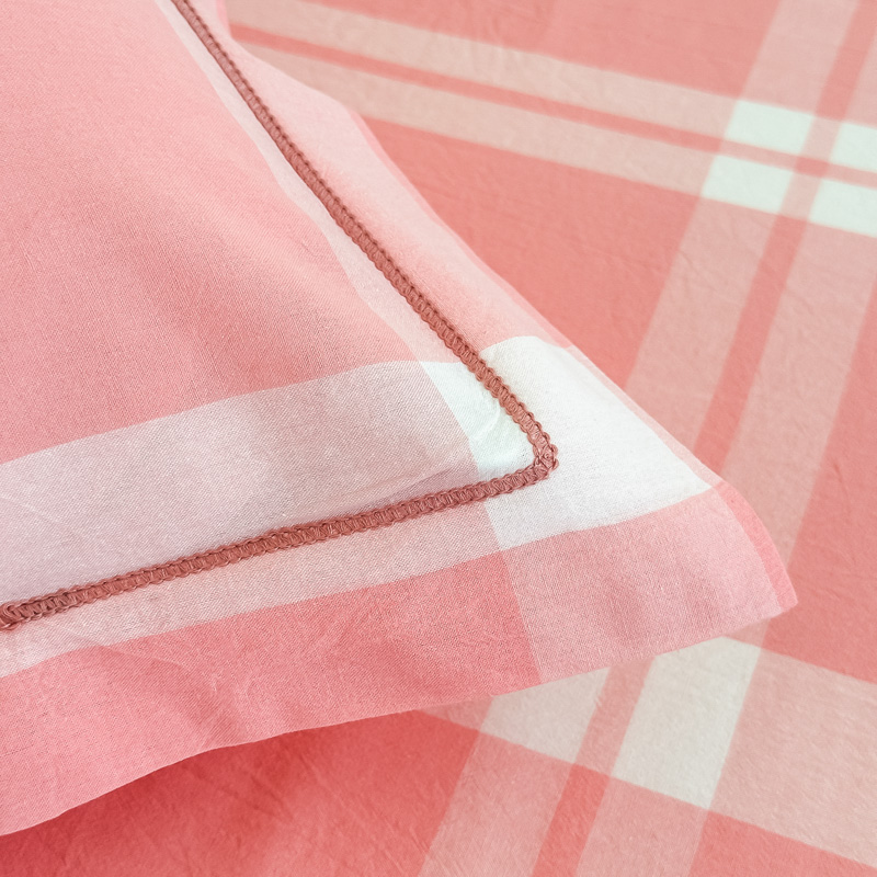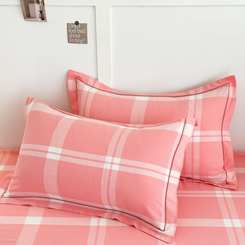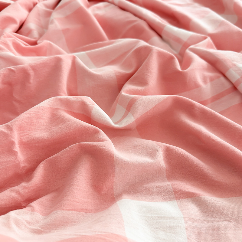 商品名称:侯先生家纺 2025新款全棉色织四件套纯棉被套床单四季款格子三件套 布鲁格-粉