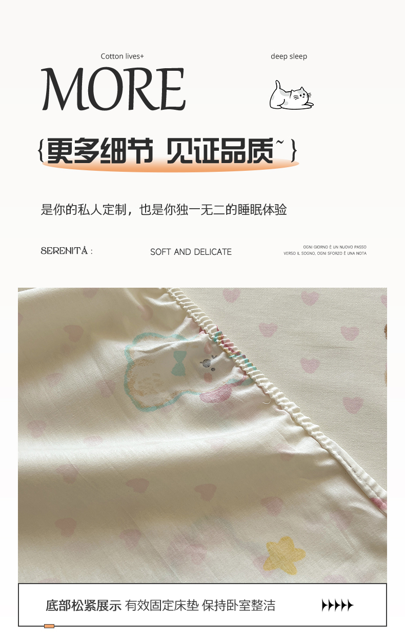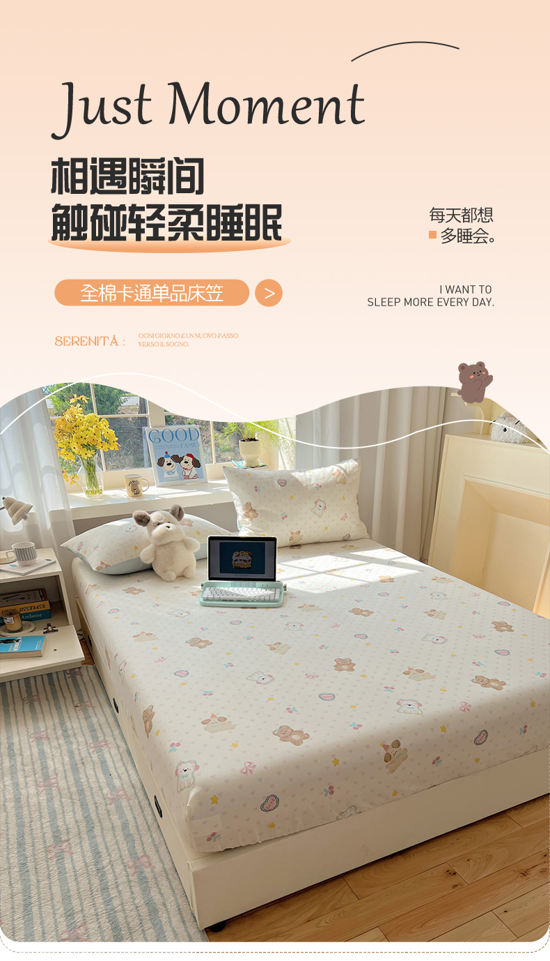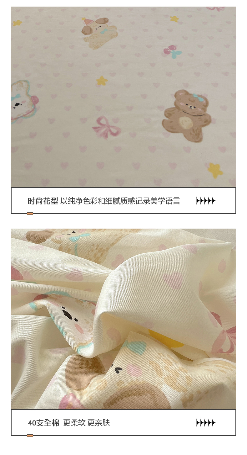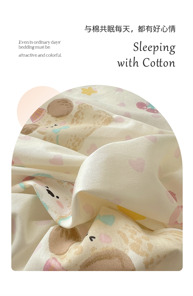 商品名称:六巷胡同 2025新款40s13070全棉纯棉卡通单品系列床笠单件-单床笠 奶油甜心熊