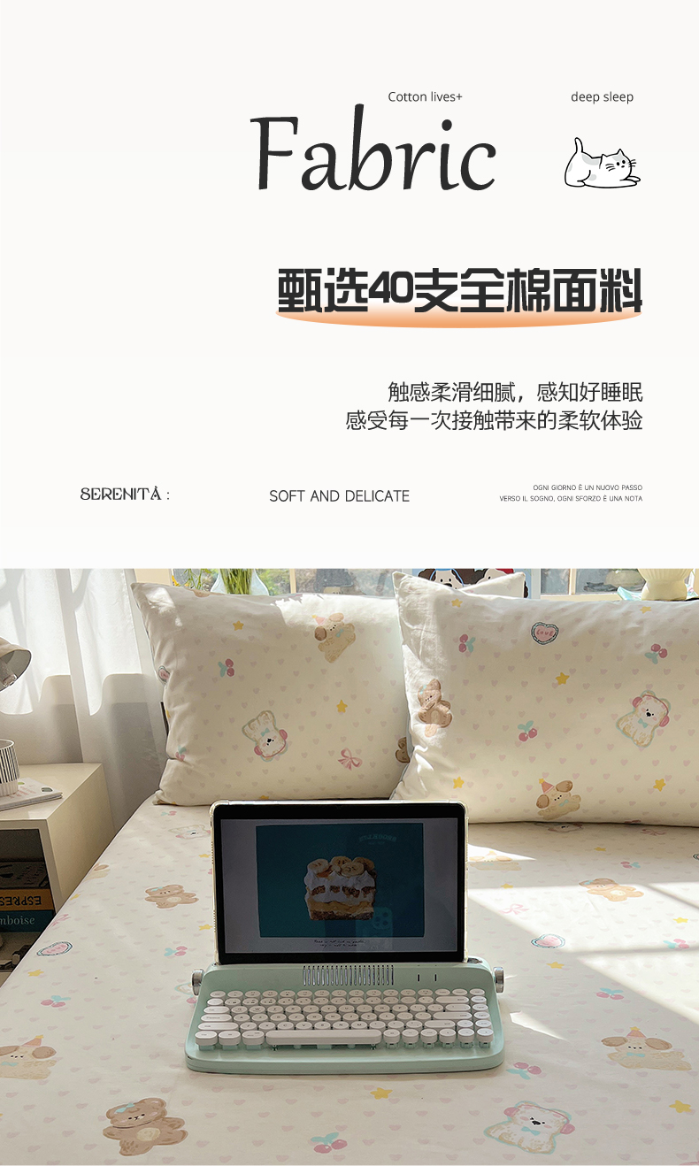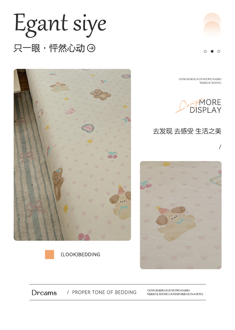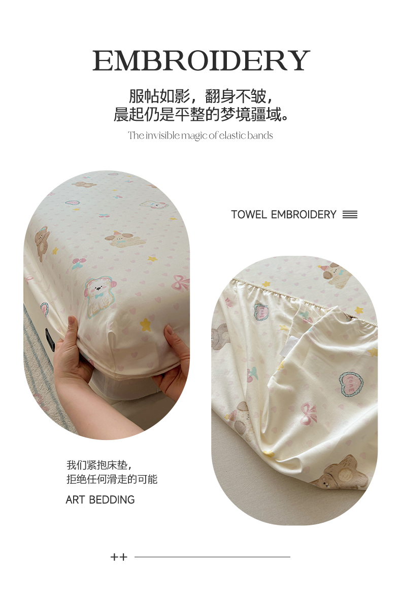 六巷胡同 2025新款40s13070全棉纯棉卡通单品系列床笠单件-单床笠 奶油甜心熊