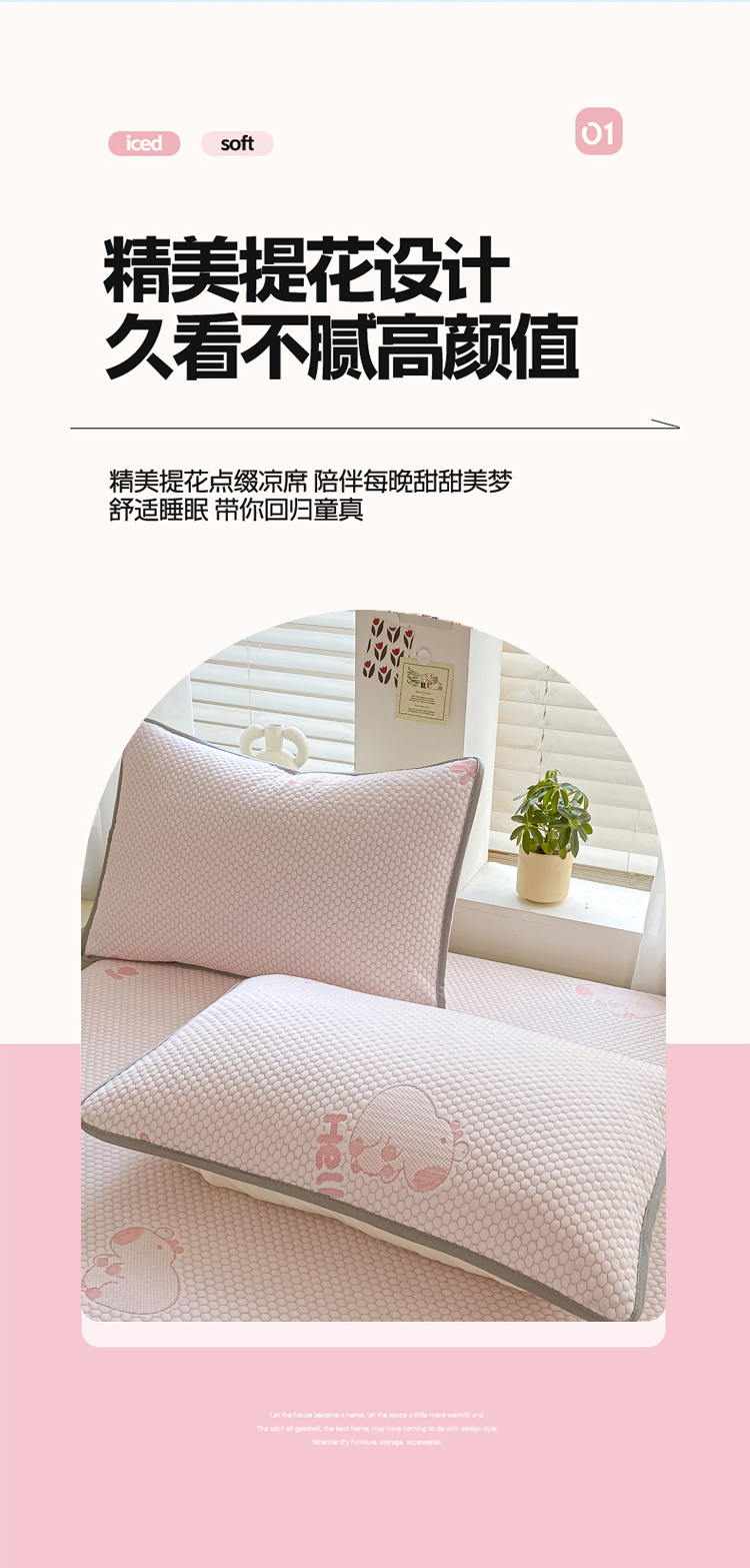 商品名称:梦初语 2025夏季新款冰丝凉感豆豆凉席床垫夏天学生宿舍可水洗单人席子凉席-直播爆款 卡皮巴拉-卡其